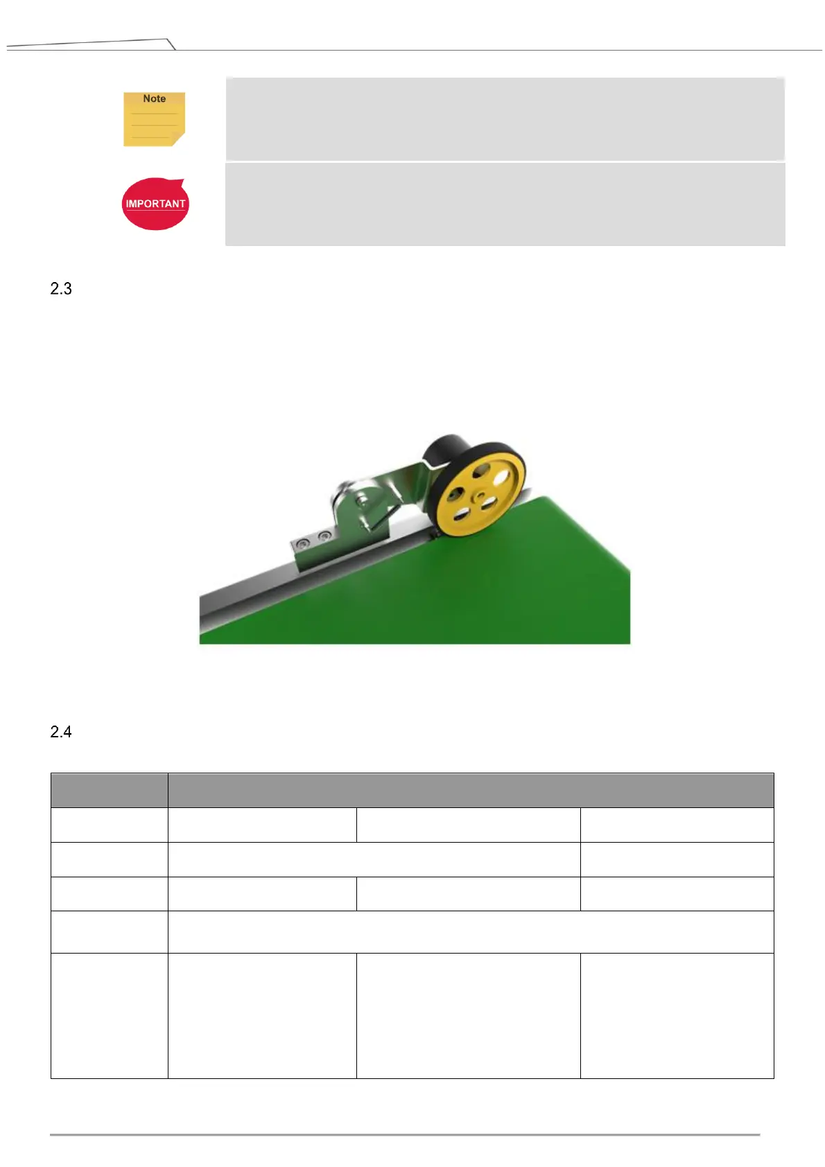 Make sure that the code wheel is flat against the conveyor to ensure its accuracy.