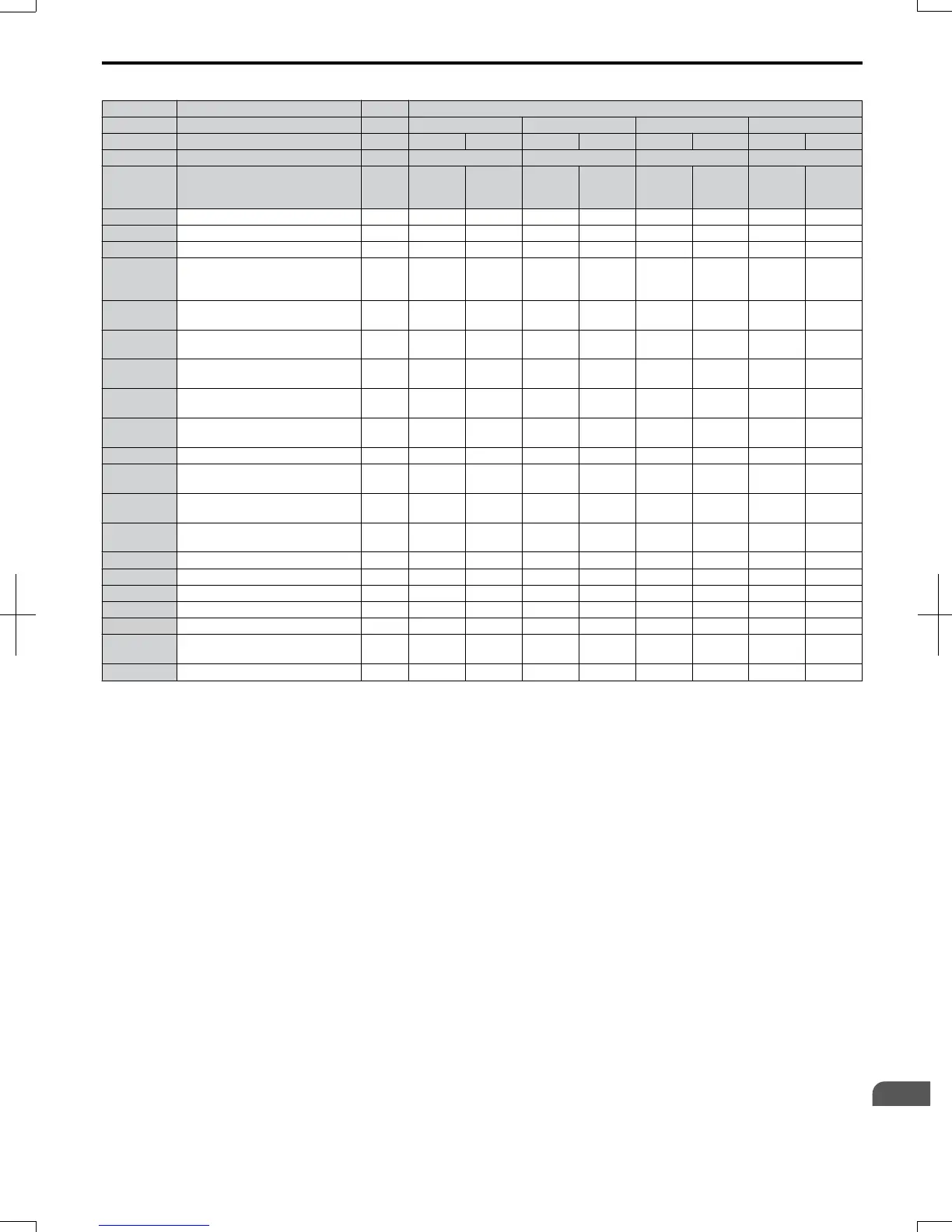Table B.7 Three-Phase 400 V Class Drives Default Settings by Drive Capacity and ND/HD Setting