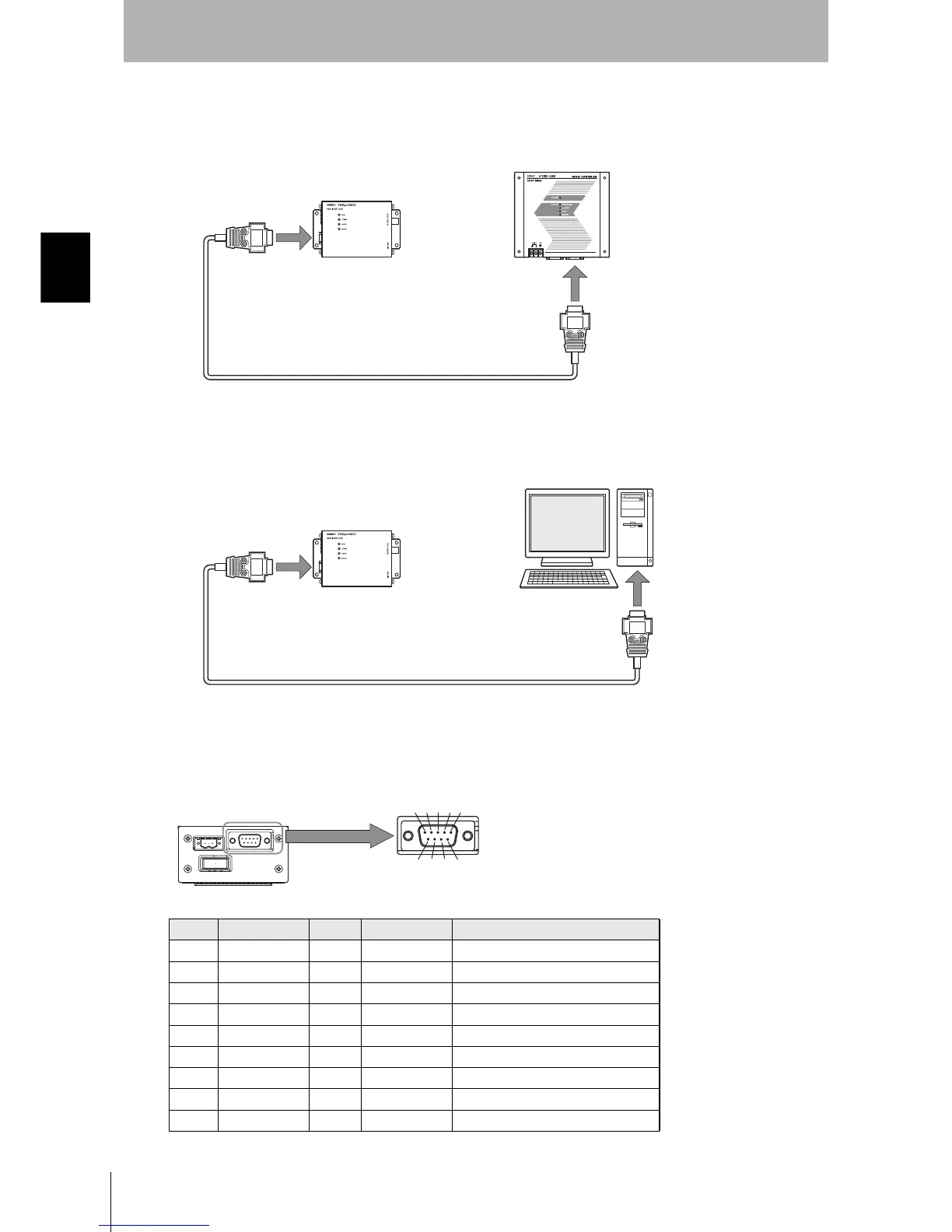 The method for connecting a CIDRW Controller or host device via the RS-232C port is explained here.