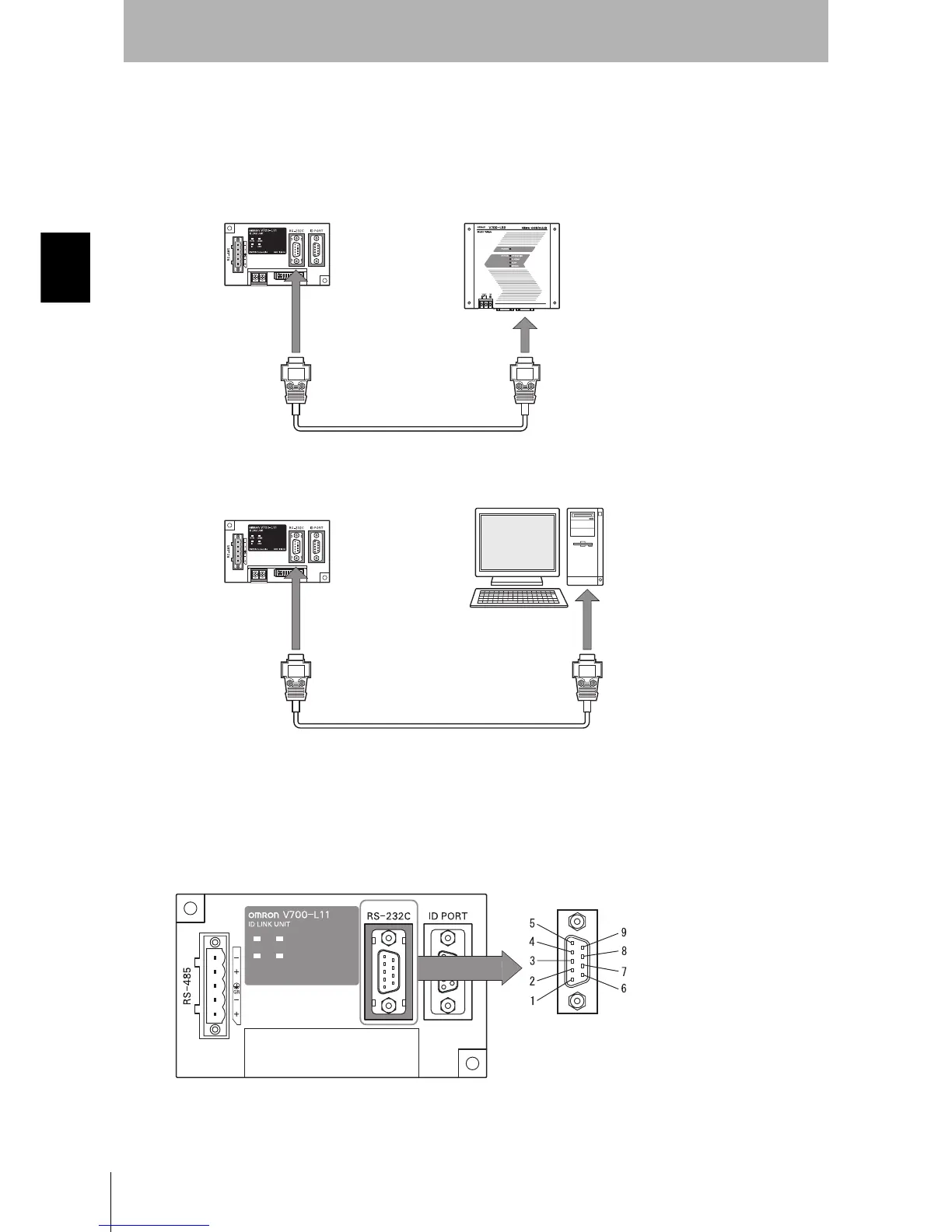 The method for connecting to a CIDRW Controller or host device via the RS-232C port is explained