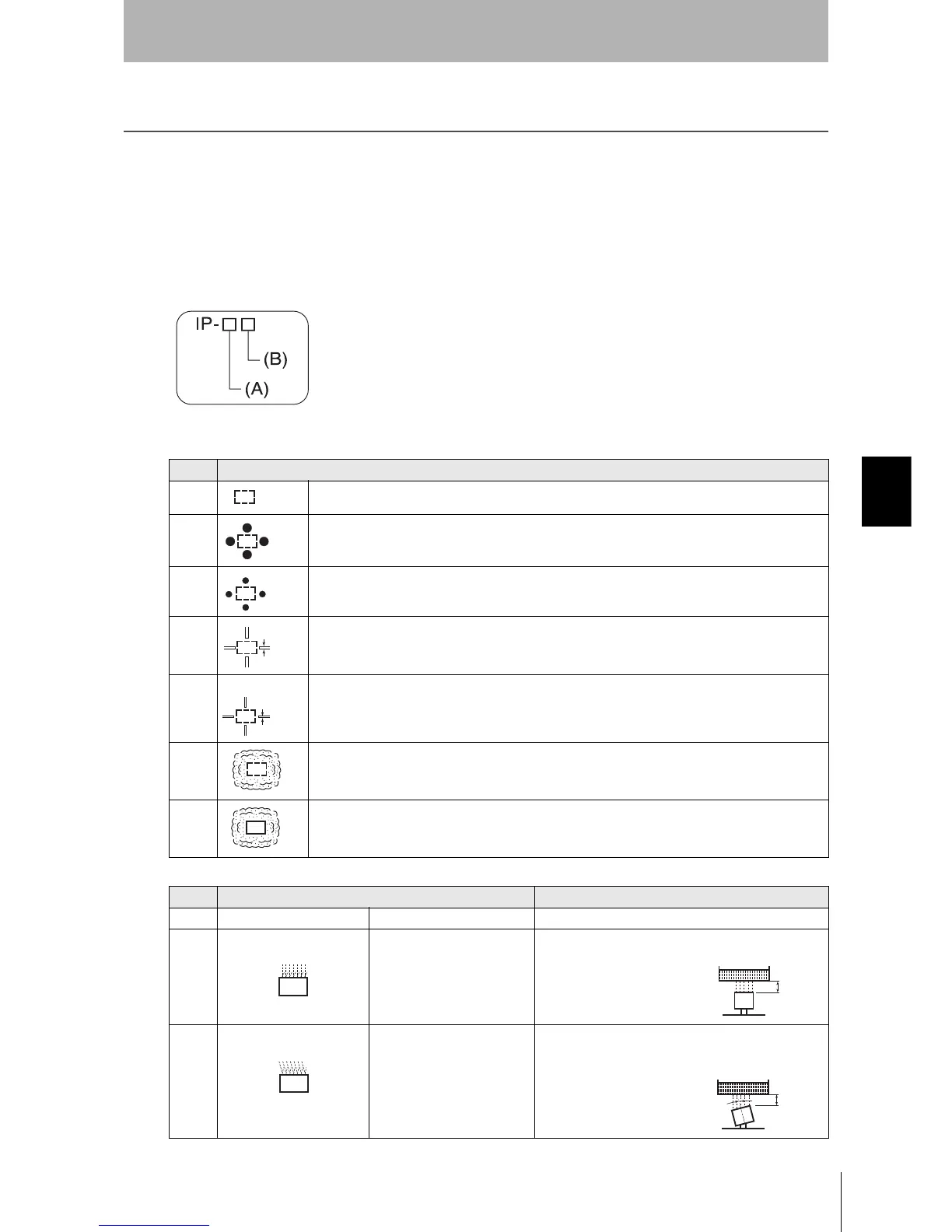Ingress protection degrees (IP-@@) are determined by the following tests. Be sure to check the sealing capa-