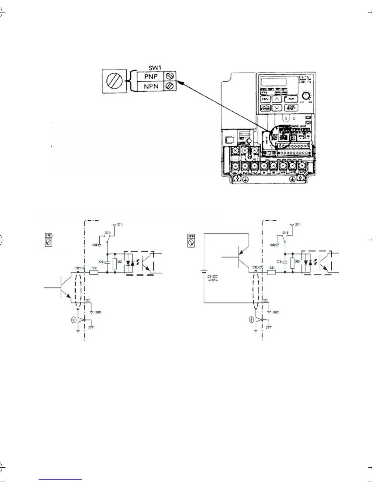 Ao utilizar SW1, é possível seleccionar a entrada tipo NPN ou PNP conforme mostrado abaixo.