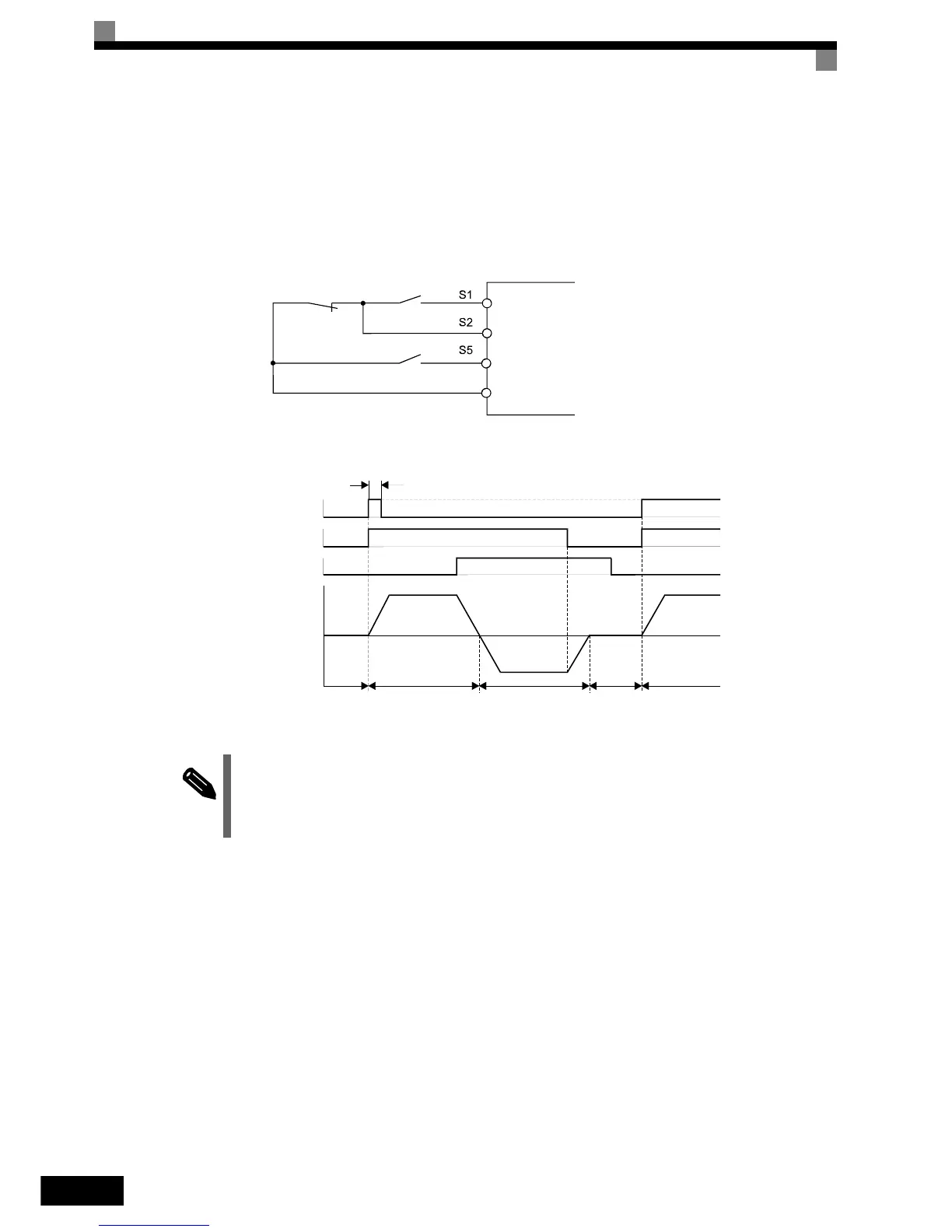 Use a control circuit that turns ON terminal S1 for 50 ms or longer for the run command. This will make