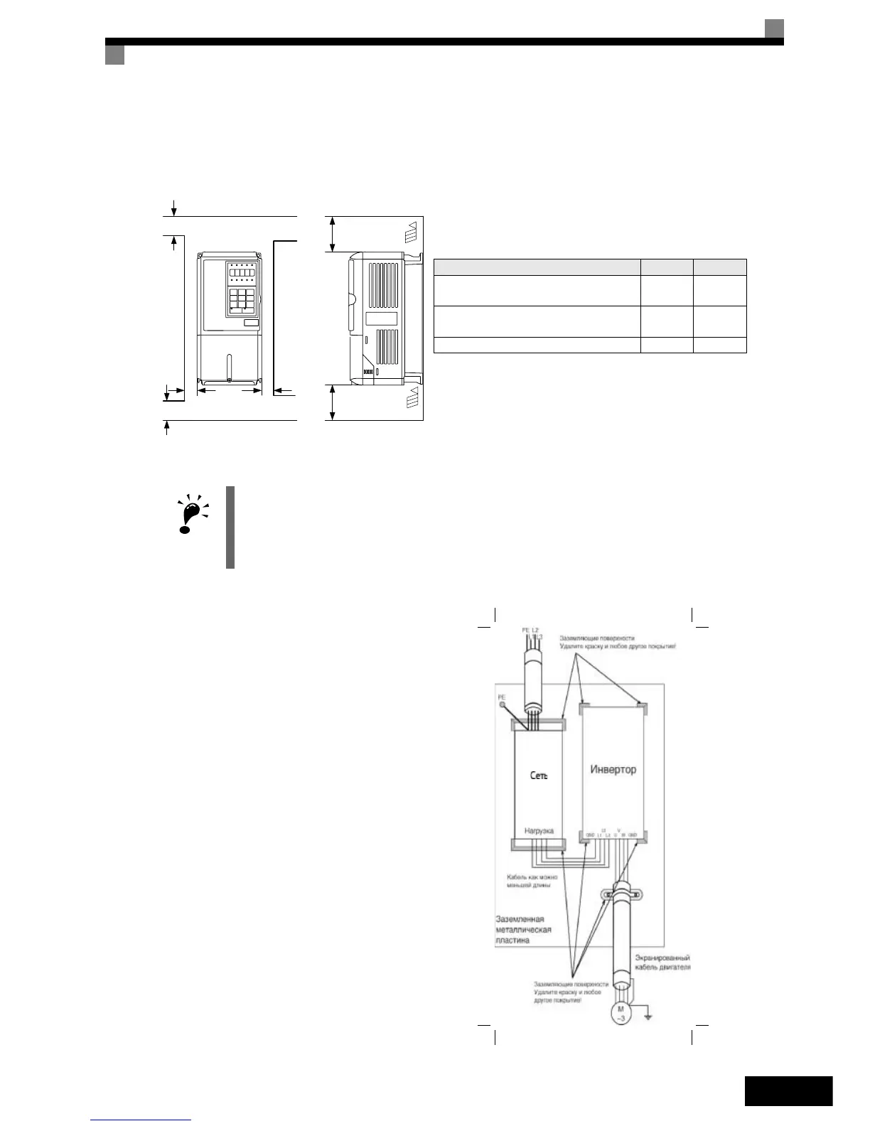 При установке инвертора мощностью 22 кВт и более в панель (шкаф) предусмотрите достаточное