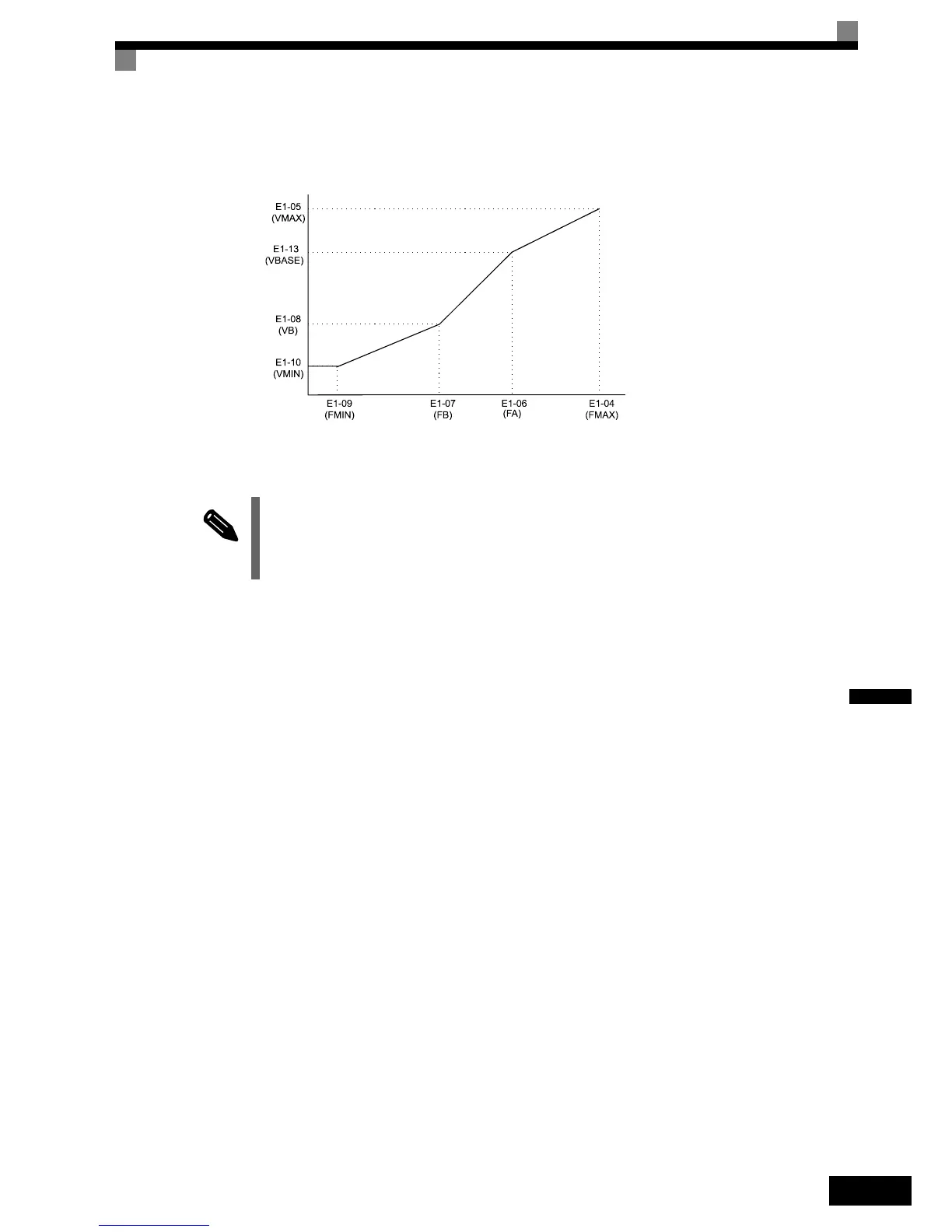 If E1-03 is set to F, the V/f pattern can be set individually using the parameters E1-04 to E1-10 (see Fig 6.24).