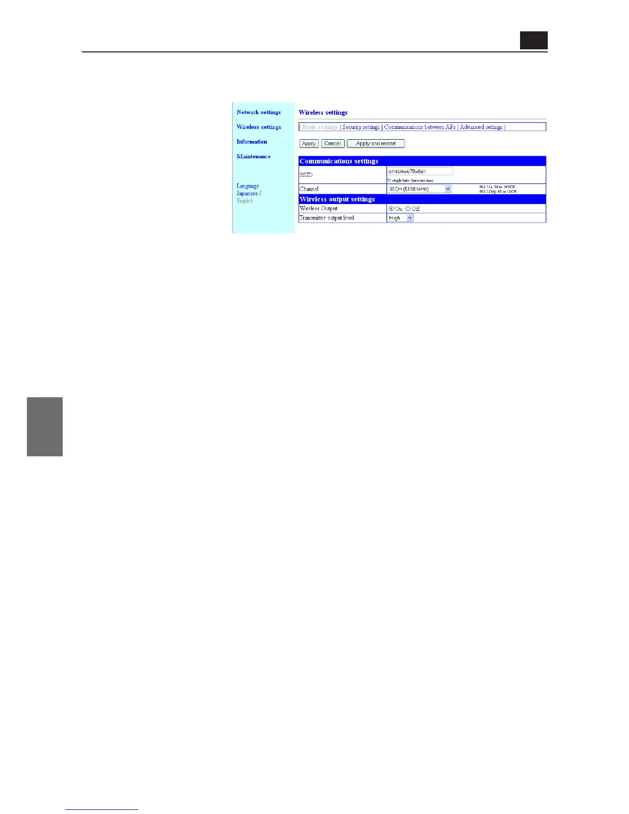 <Apply> Button..................... This button fixes a changed setup item in the "Wireless settings" screen.