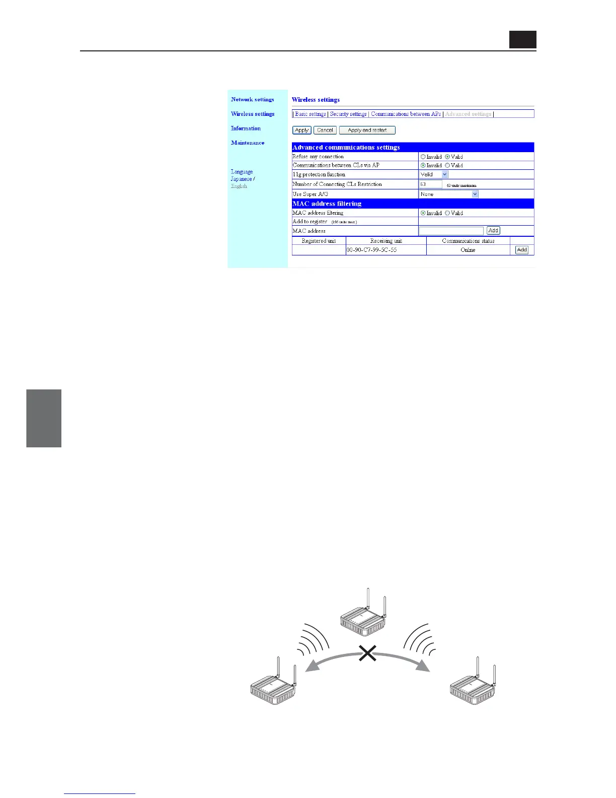 ● Advanced communications settings