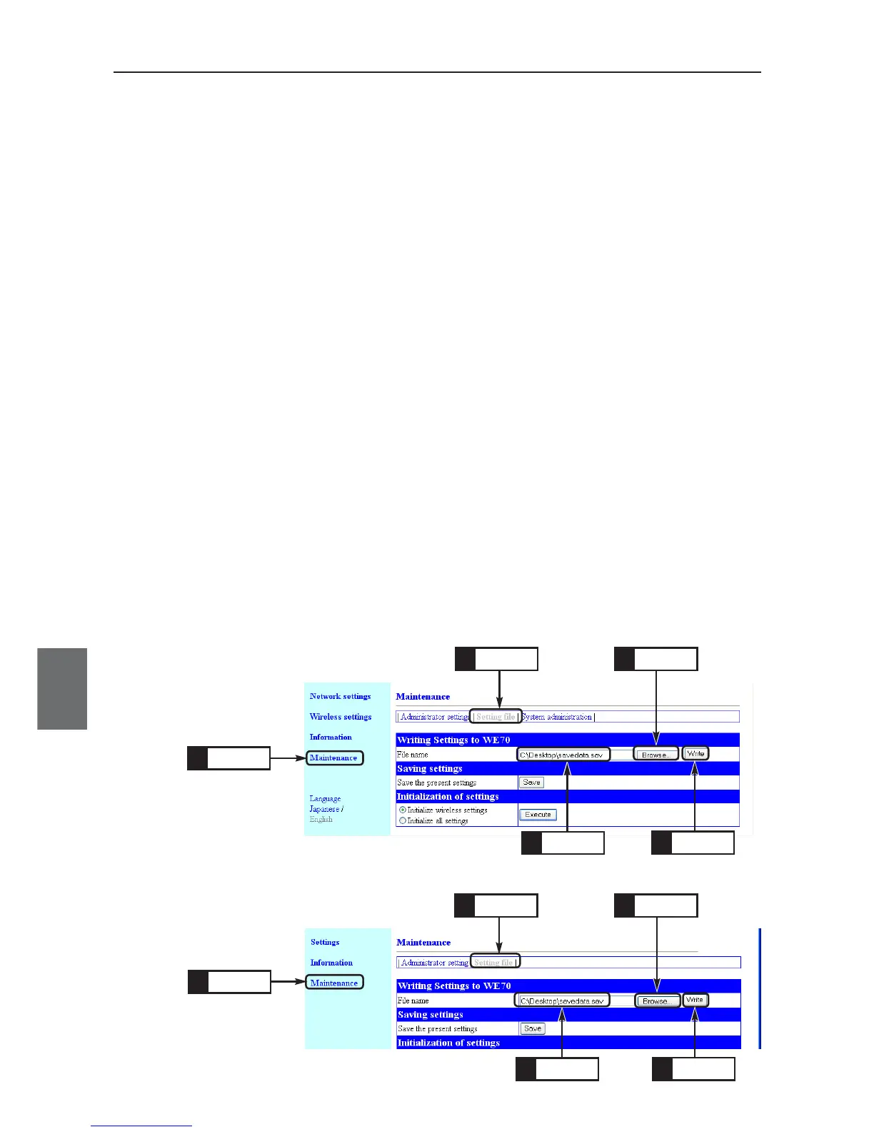 This section describes how to write a setup file saved by "Saving Setup Data" to a wireless unit.