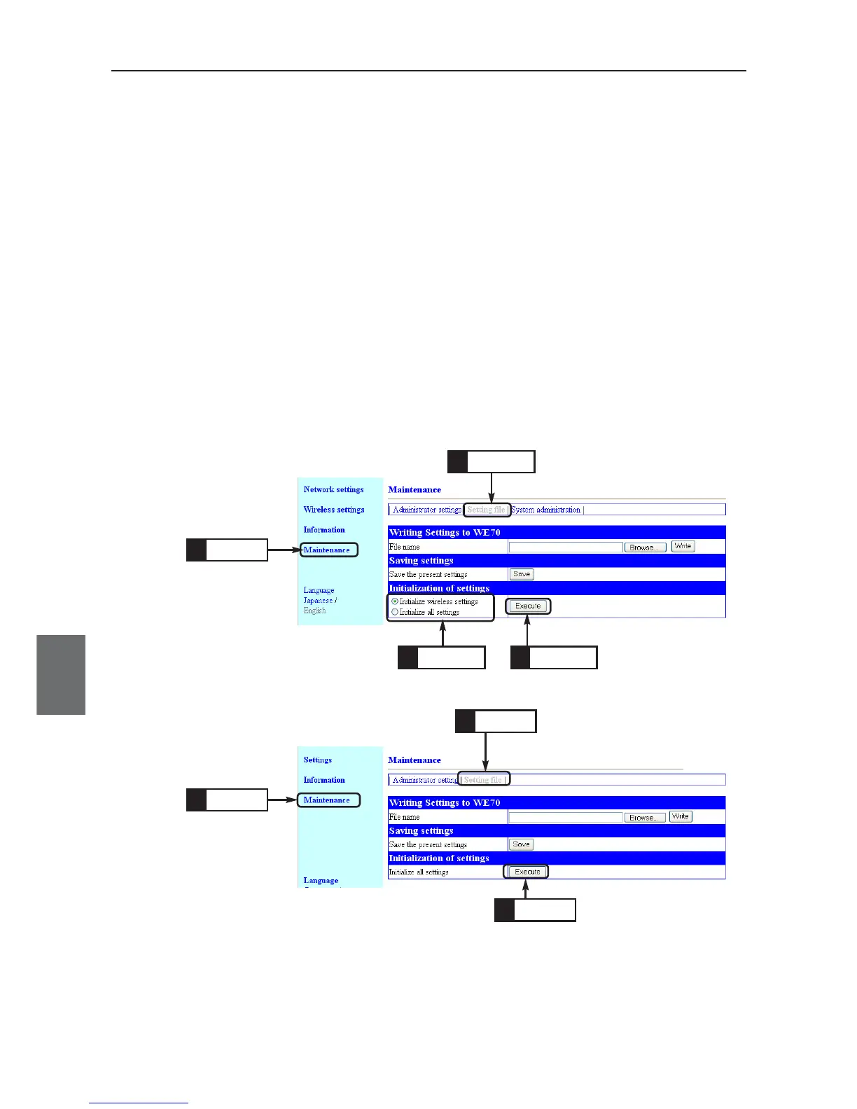 Initialize wireless settings: All of setup items in Wireless settings menu