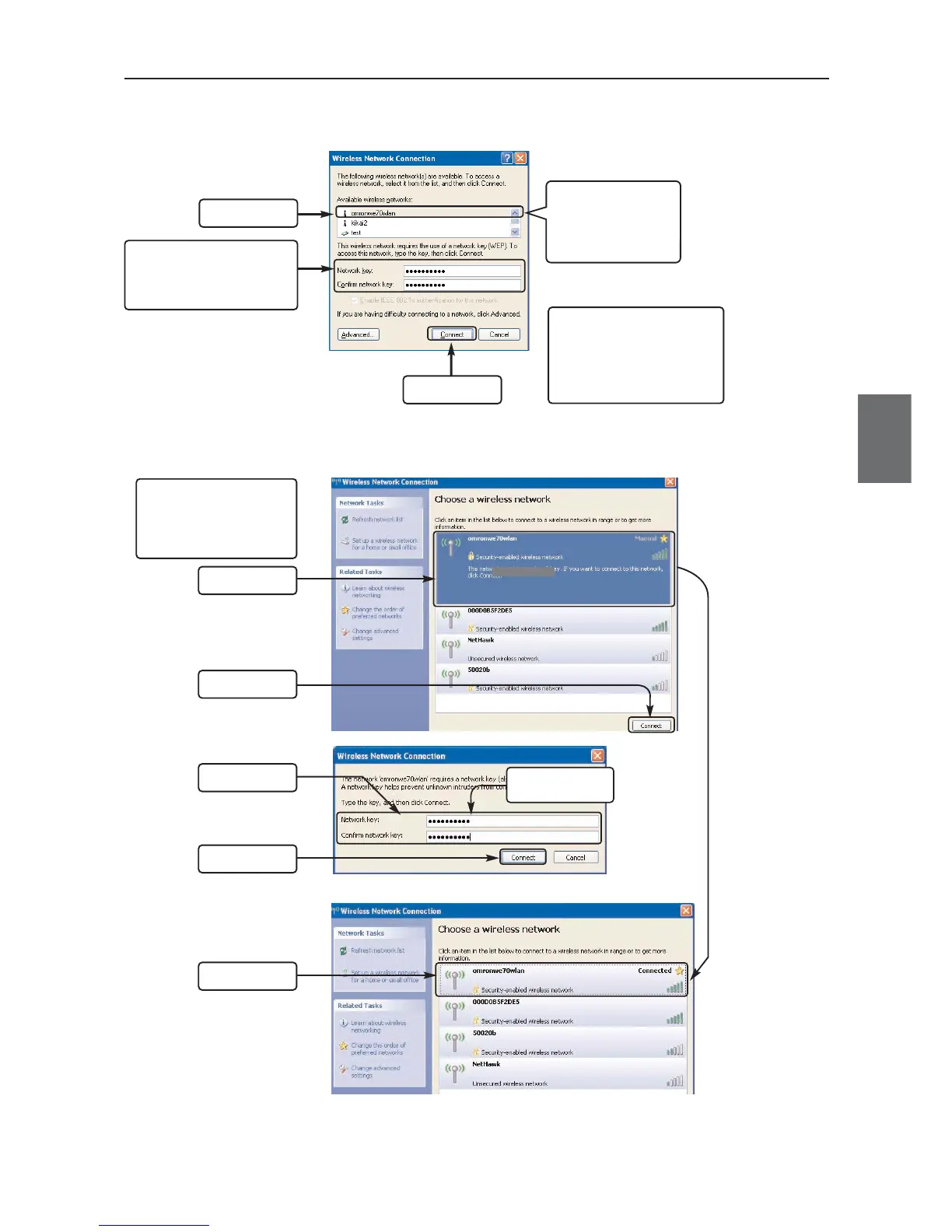 <Wireless LAN Terminal End: Connection Example for Windows XP (Service Pack 2)>