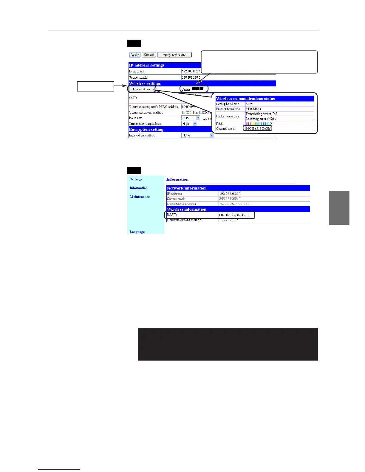 (5) From CL-1 Setup screen "Information" menu, "Wireless information",