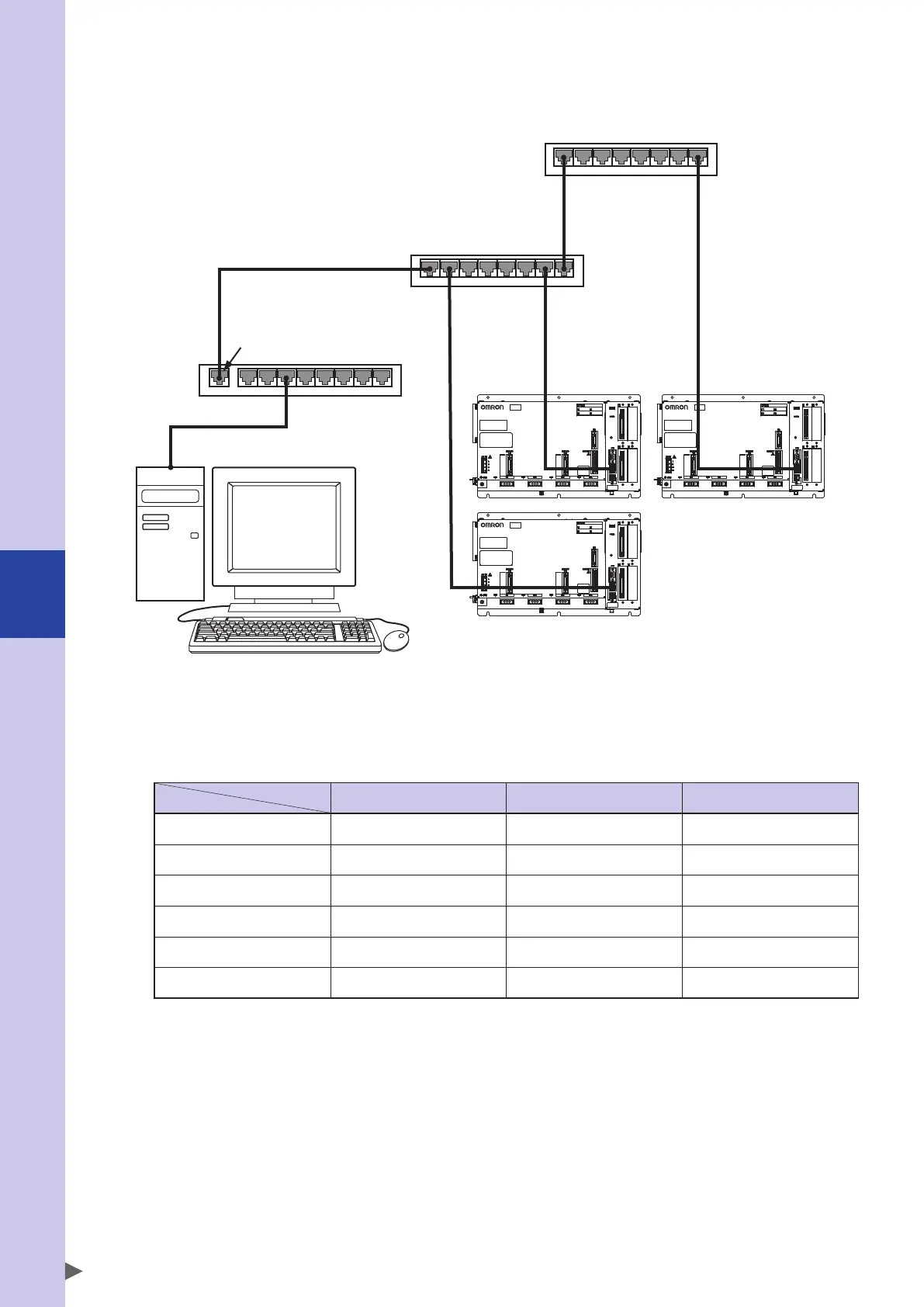 * Similar network can be configured by performing the stack connection of the stackable hubs. In this case, multiple