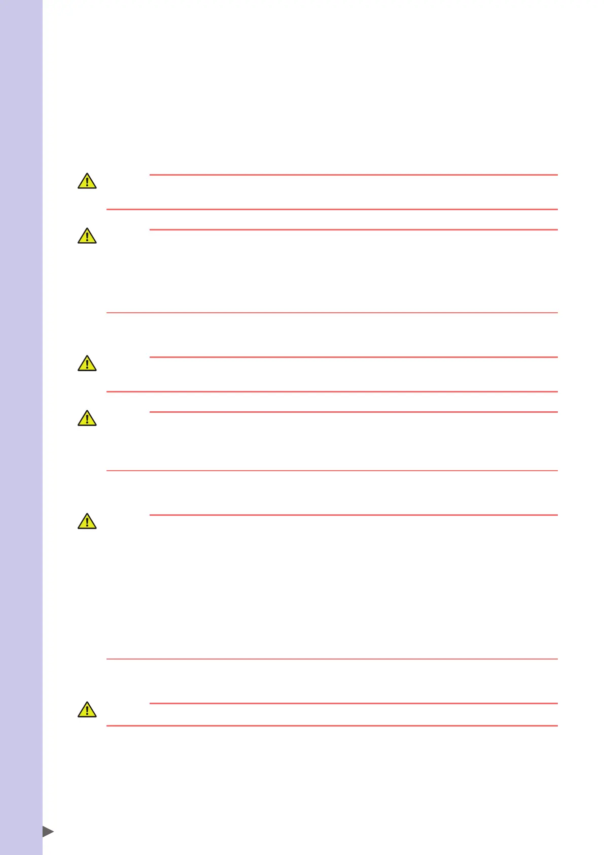 • Do not modify the cables and do not place any heavy objects on them. Handle them carefully to avoid