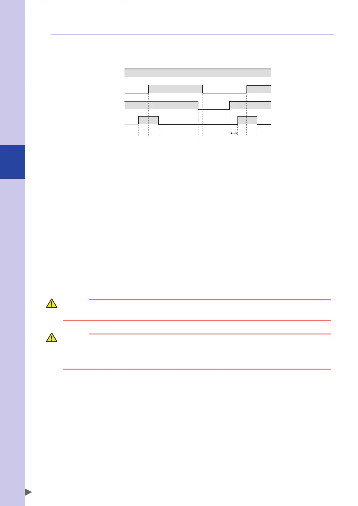 c) Automatic operation start input turns off after checking that the robot program-in-progress output turns on.