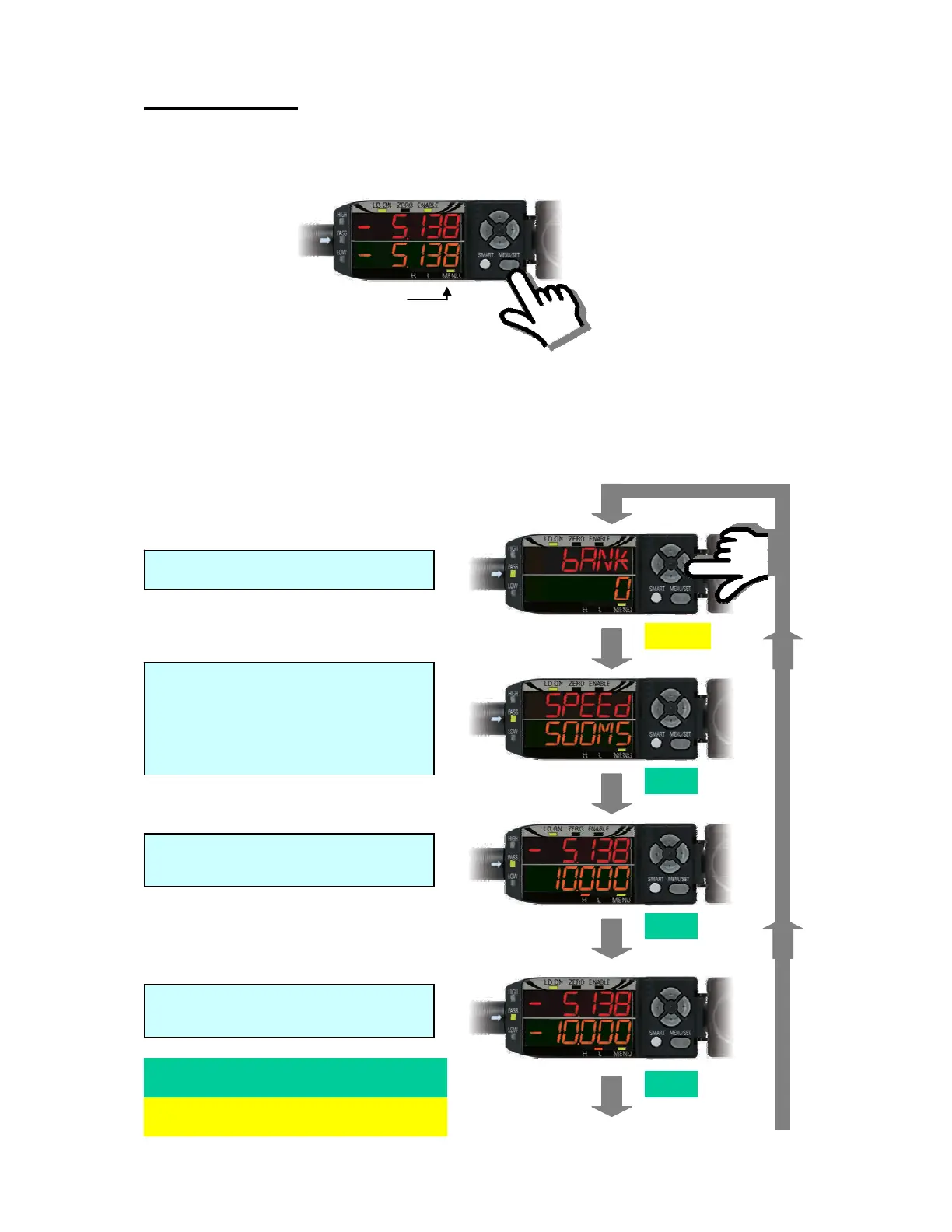amplifier to the setting mode (pressing again for 3s moves back to RUN mode):