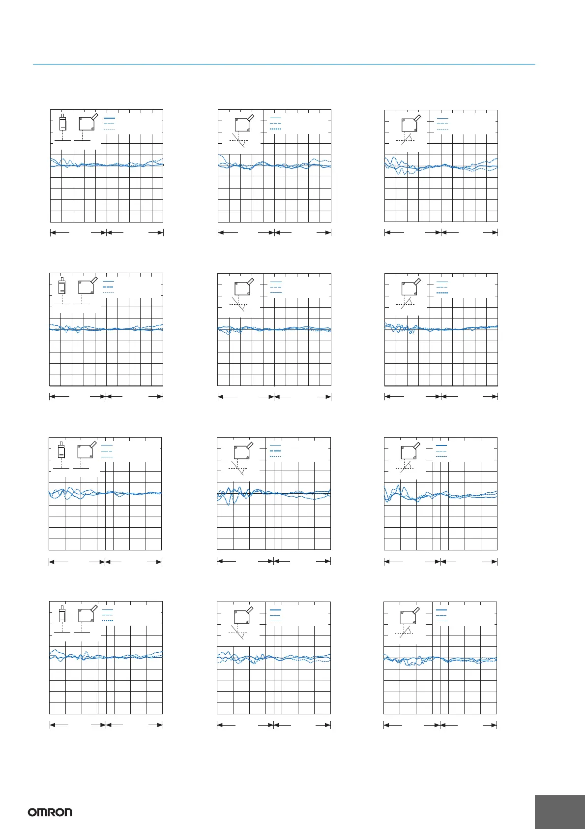 The x-axis displacement indicates the measurement distance displayed by the amplifier unit. The measurement distance displayed by the amplifier