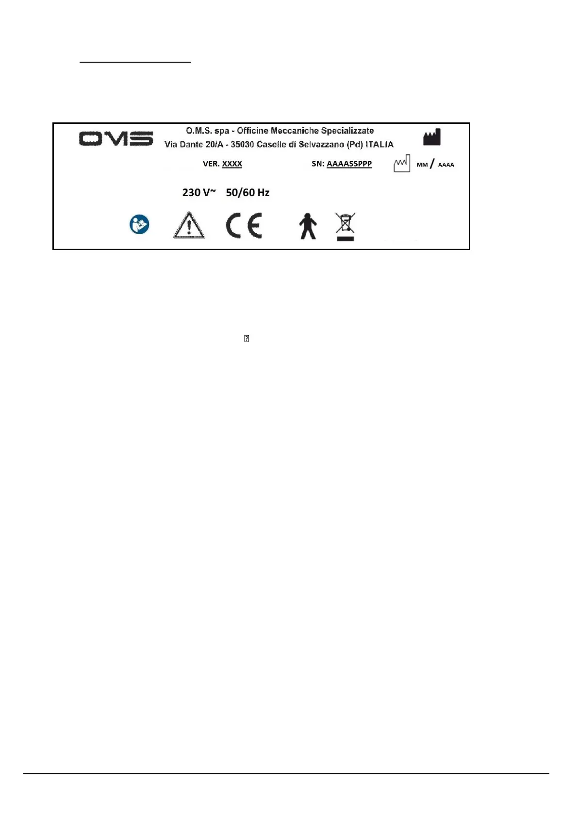 OMS ARCADIA EXT - 2.1. Data Plate Information