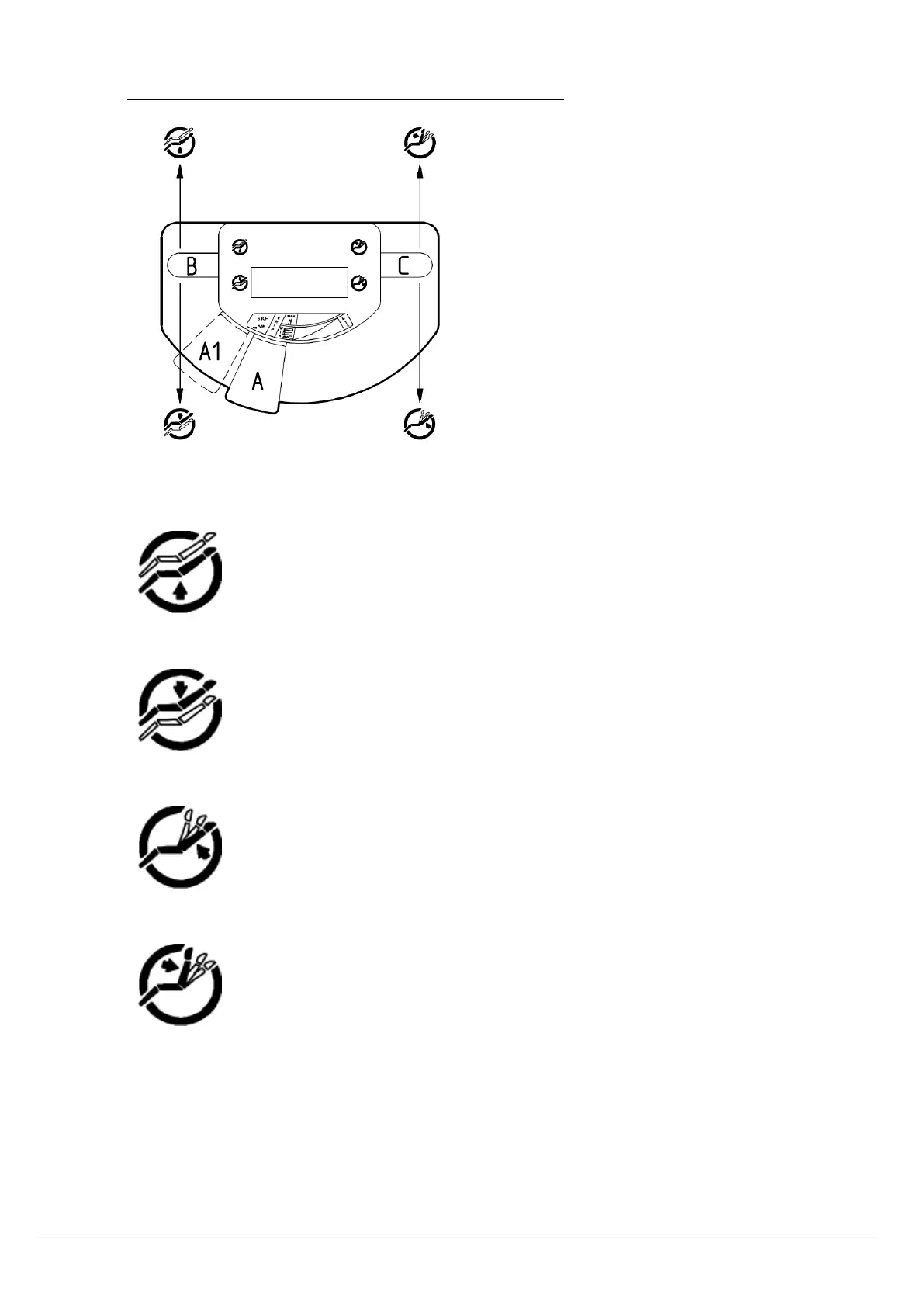 The footcontrol has two side levers (B and C) that allow the operator to position the chair using the controls on
