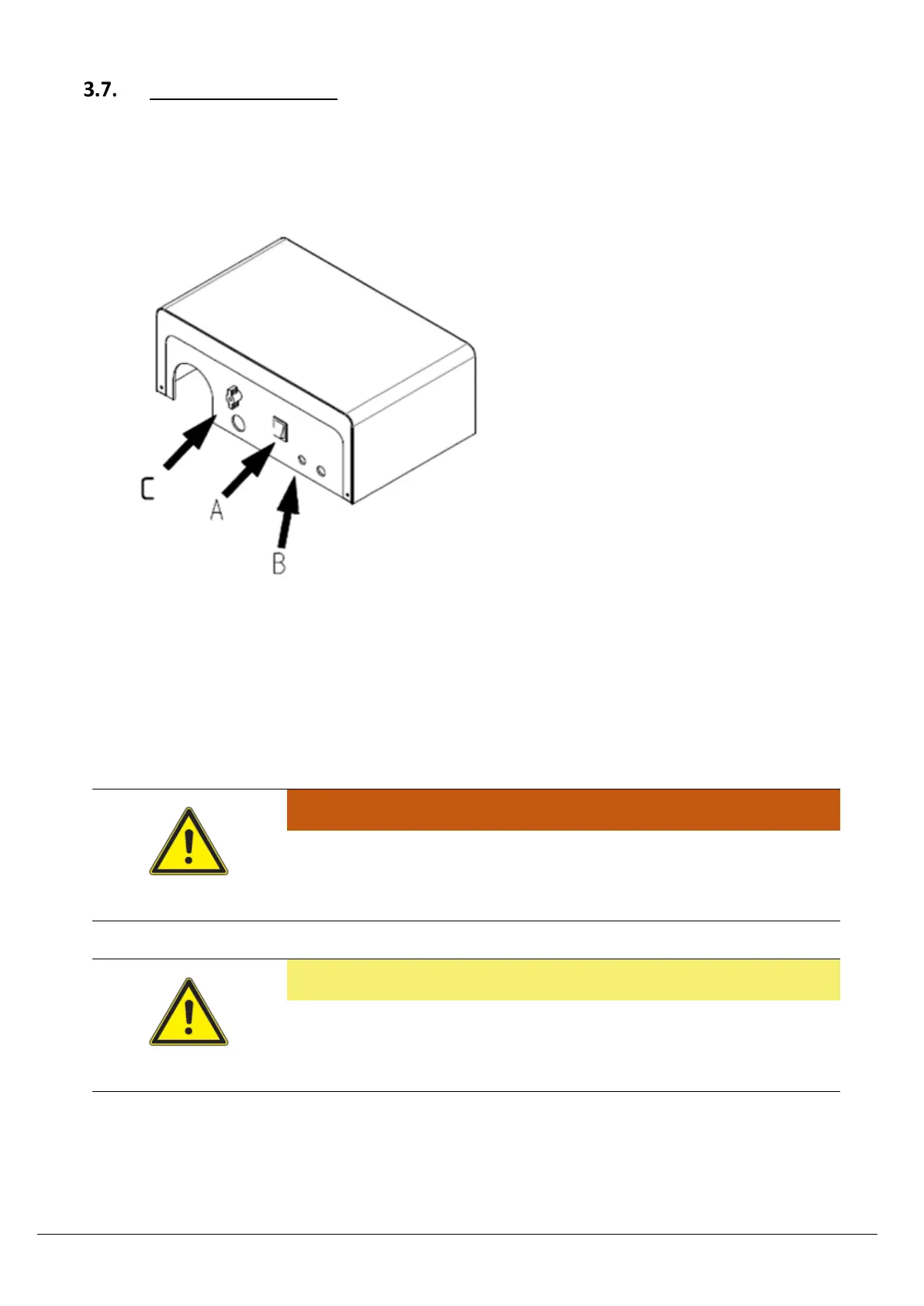 The main power switch disconnects the unit from the mains electricity, before