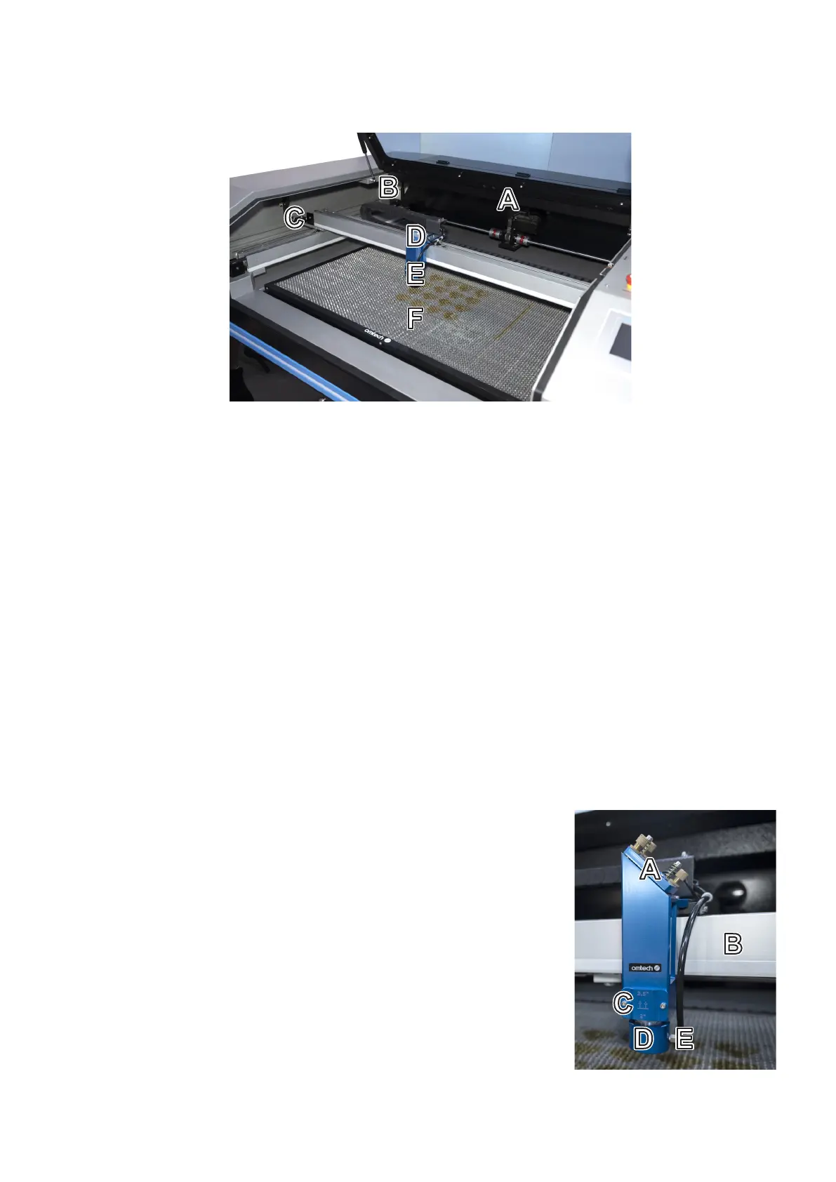 E. Focus Lens—This lens directs and focuses the laser to the material. For the best eect, it should be at the correct