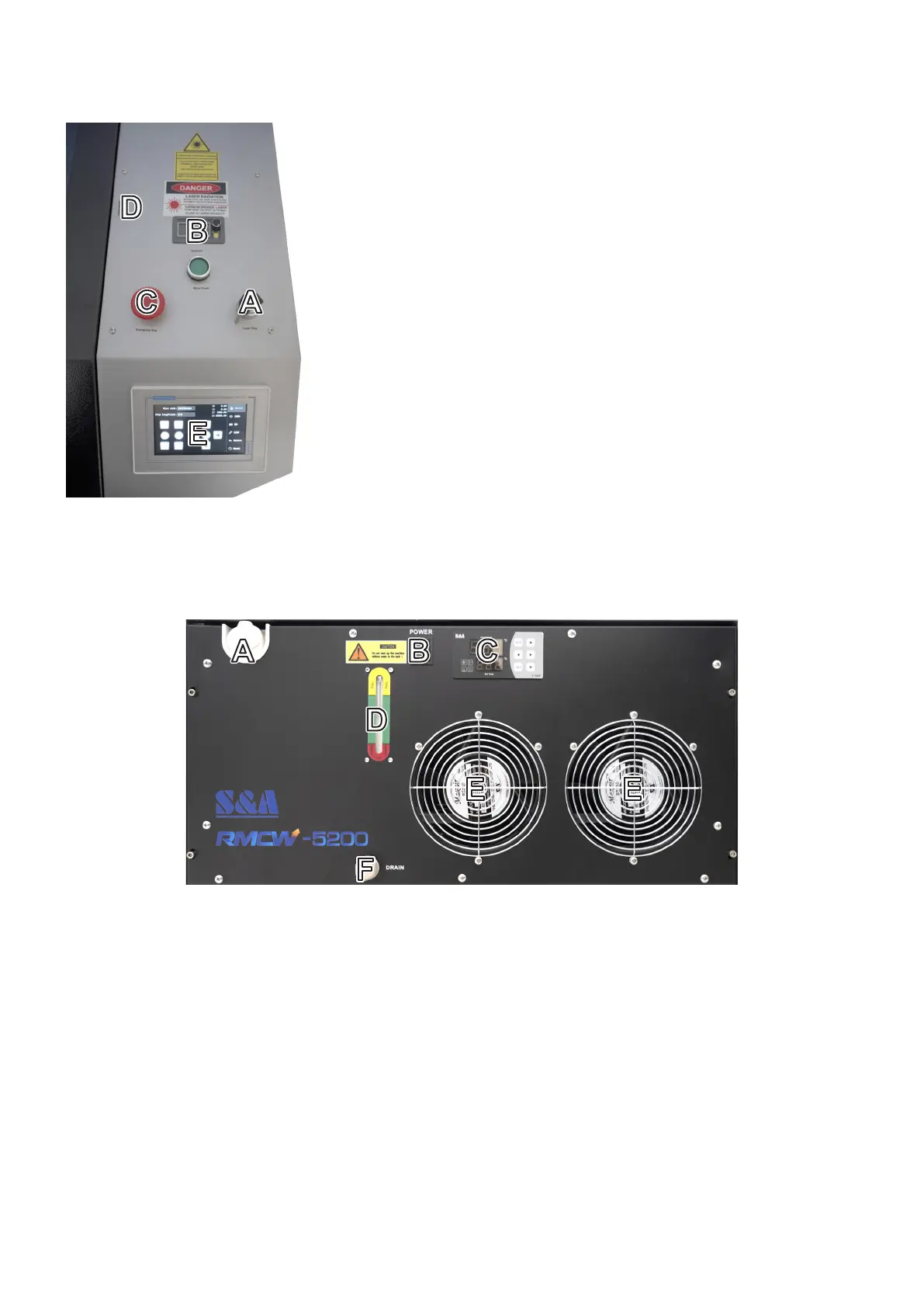 E. Digital Touchscreen—This is the main control panel for the laser.