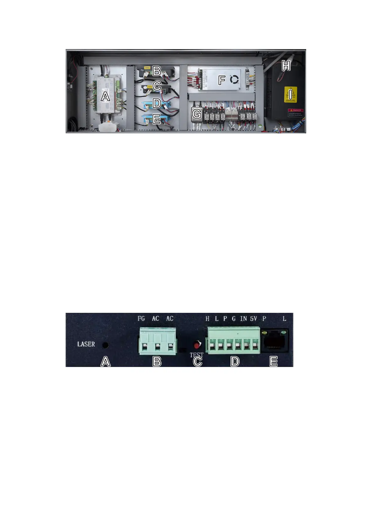 B. Main Power Terminal—This terminal block holds the power supply’s connection to the engraver’s grounding