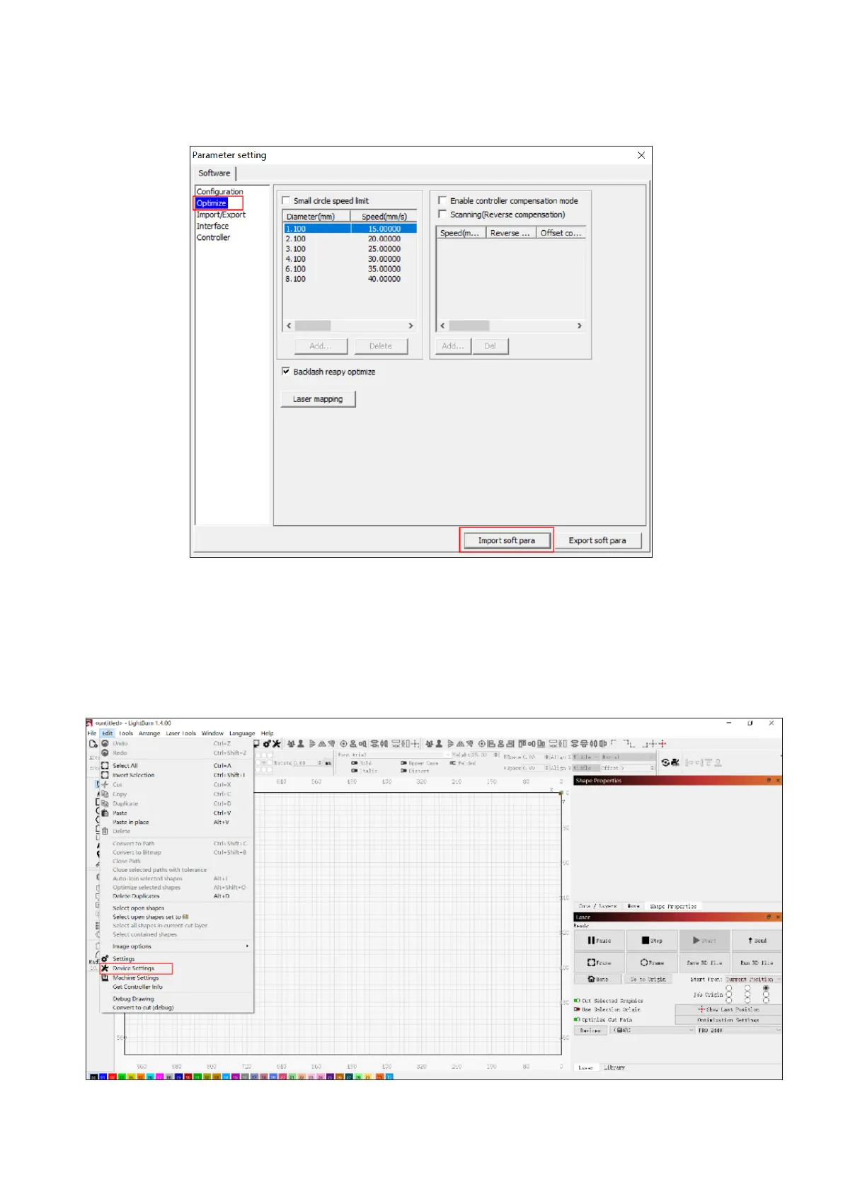 1. Click open your Lightburn, then “Edit”, and then “Device Settings”.