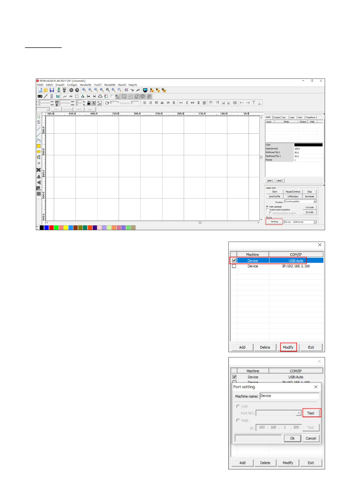 1. Initiate RDWorks V8 on your control computer and connect it to the engraver using the provided USB cable.