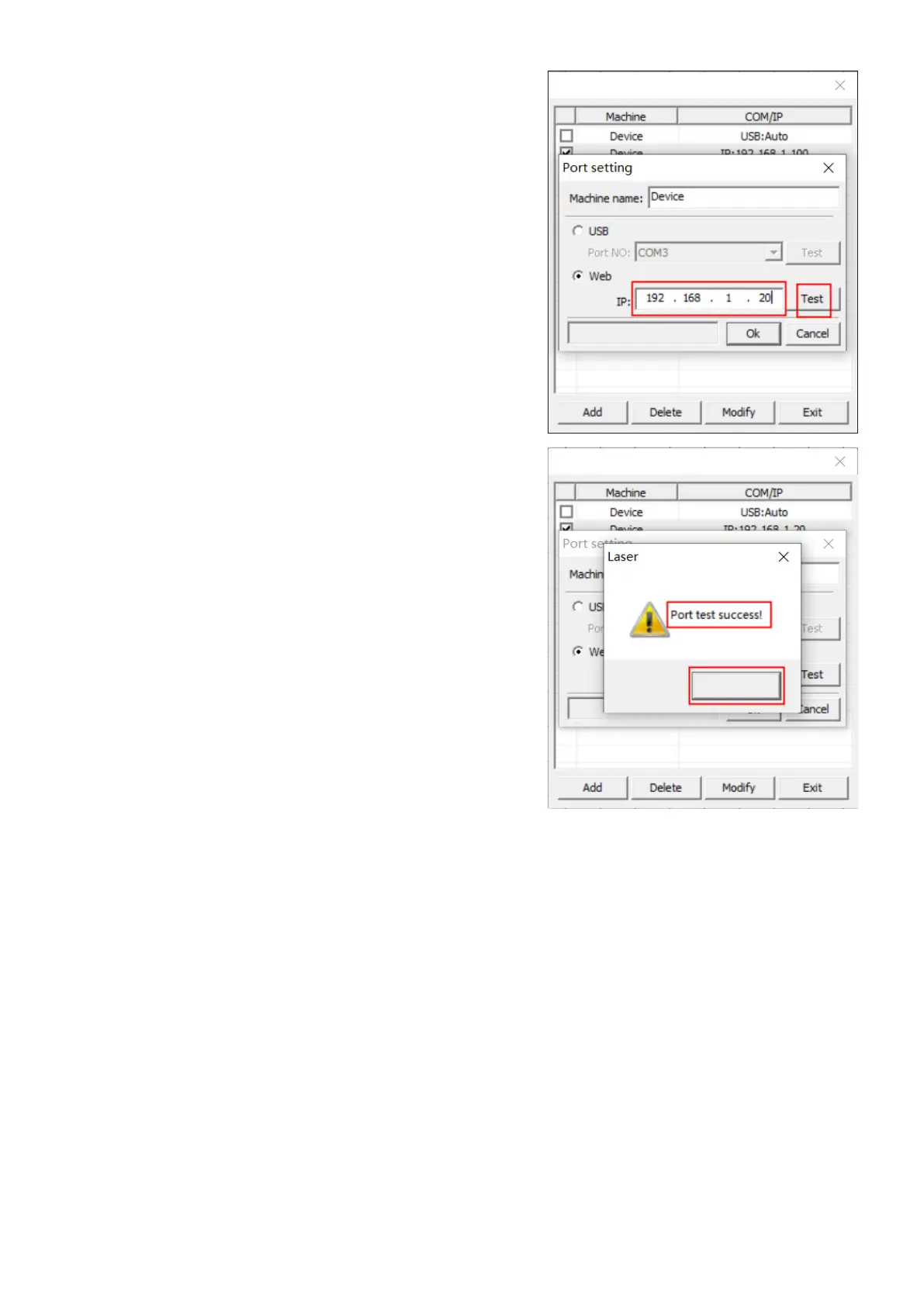 4. Set the IP address to 192.168.1.20” in the pop-up that