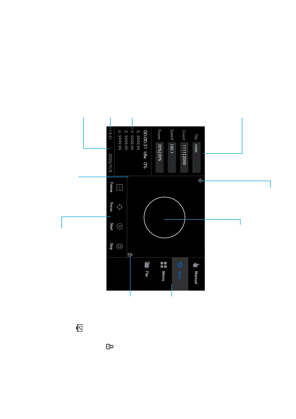 Focus: This icon enables the laser head to automatically focus
