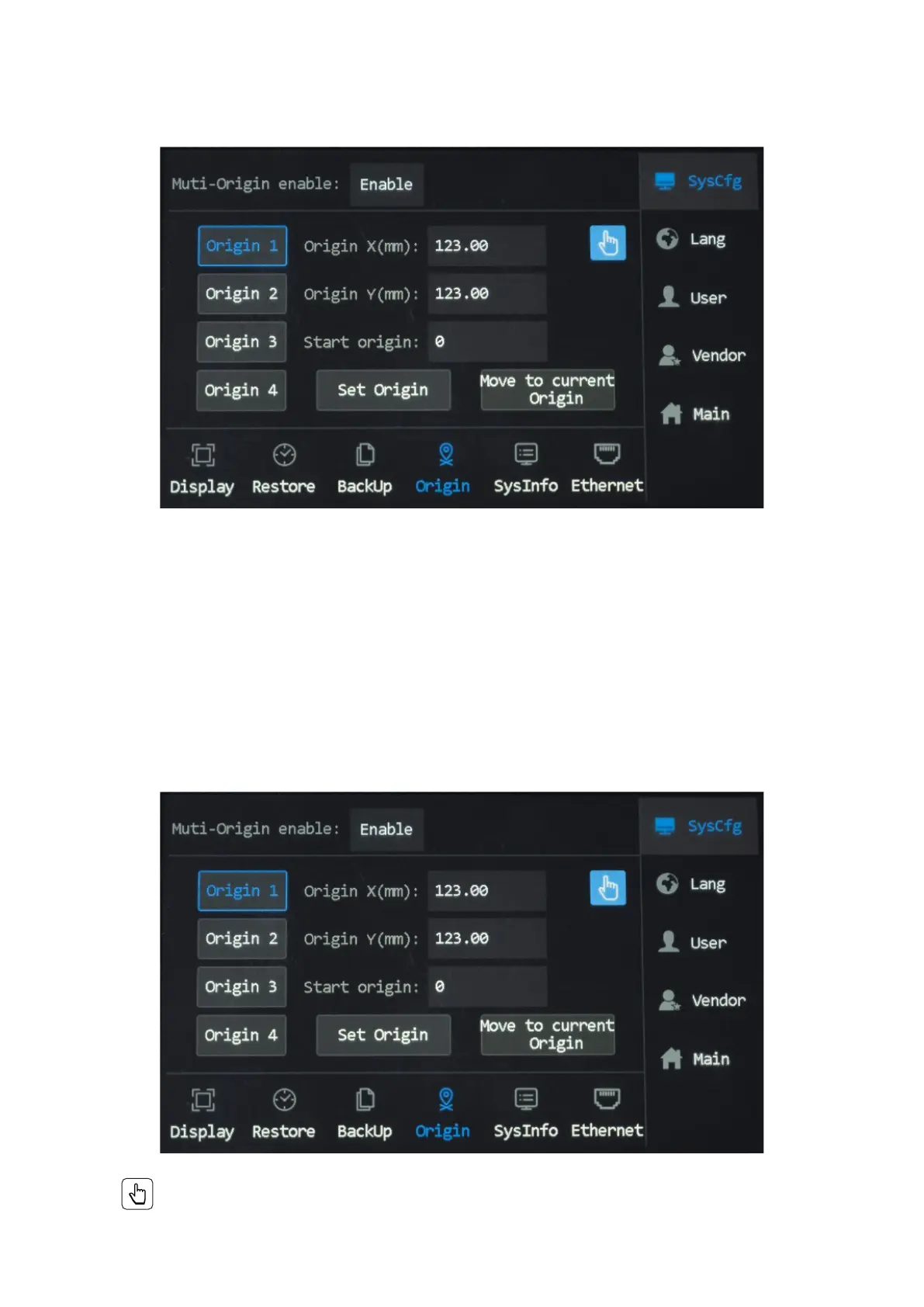 you want the laser head to move to, tap “Move to current Origin”.