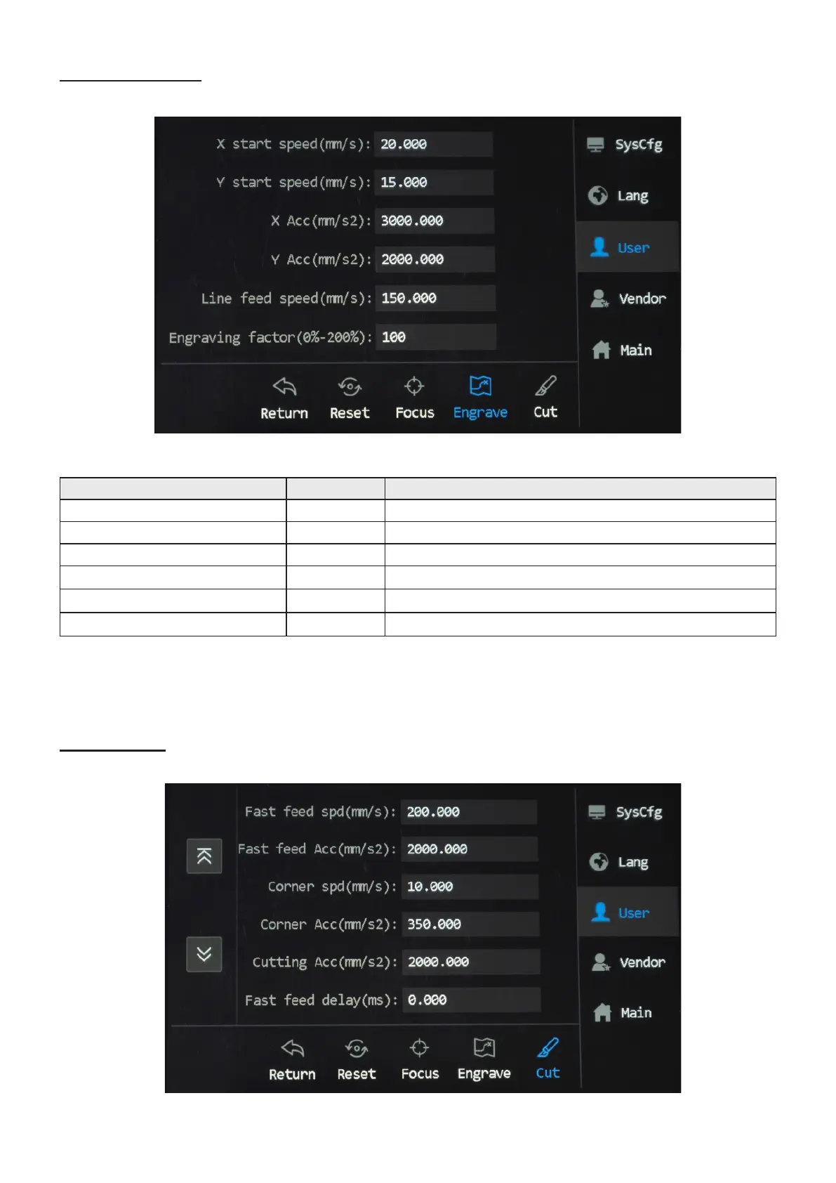 X Acc (mm/s²) Numerical Sets the laser head’s acceleration along the X axis.