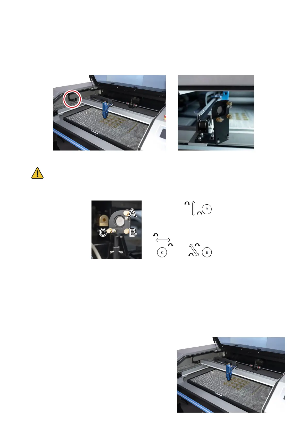 c) Test until the beam is well aligned and then retighten the nuts on the screws once all adjustments are