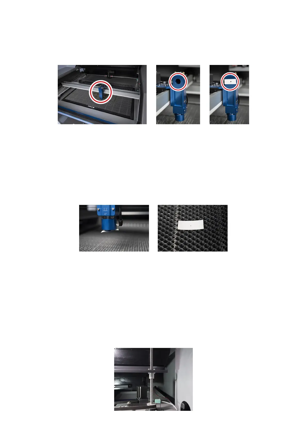 2. Tap to re the laser. If the laser is not centered through the laser head, adjust the 3rd mirror's set screws accordingly
