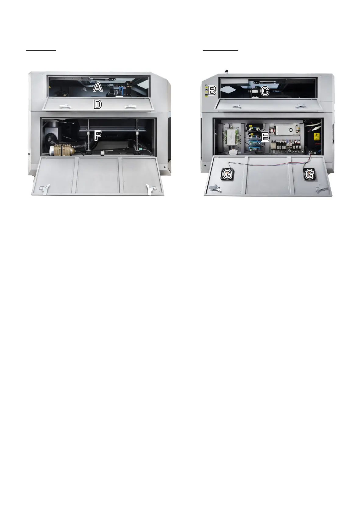 A. Top Left Access Door—This door provides access to the left Y-axis rail and the 2nd mirror. For all of the