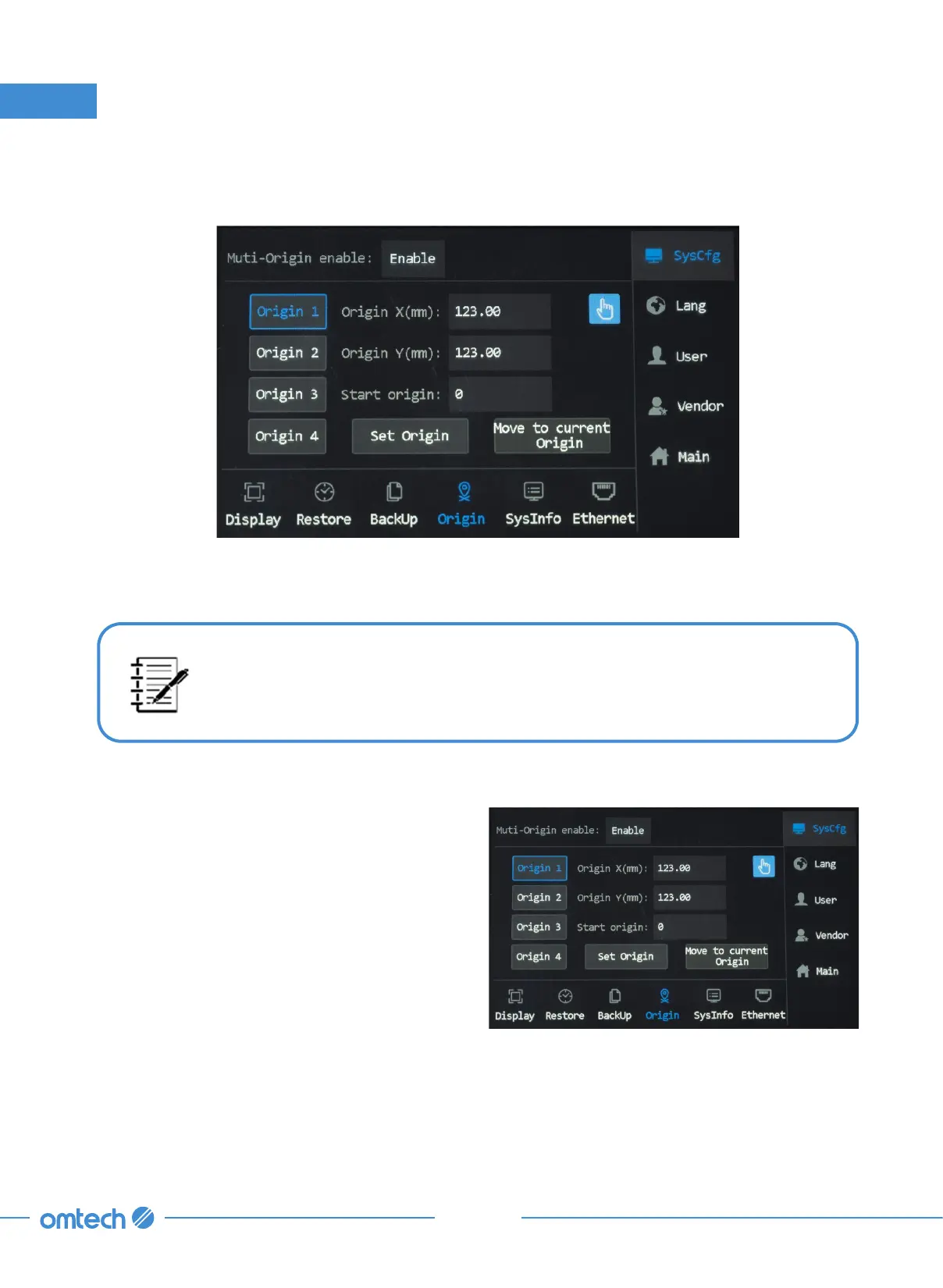 Disable selected, the system has a single default origin that the laser head returns to.