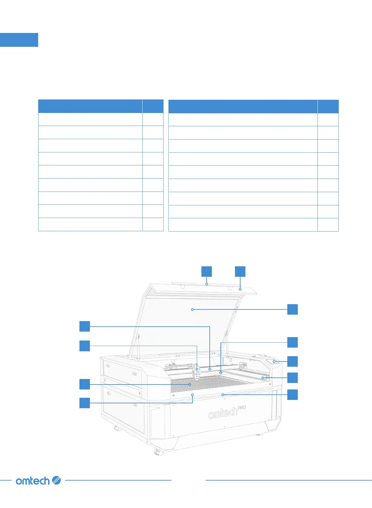 Omtech PRO 3655 - Components; Package List; Main Components Front