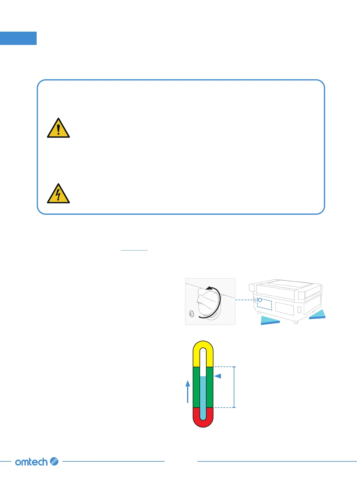 NEVER adjust the water level within the chiller while it and the laser are connected