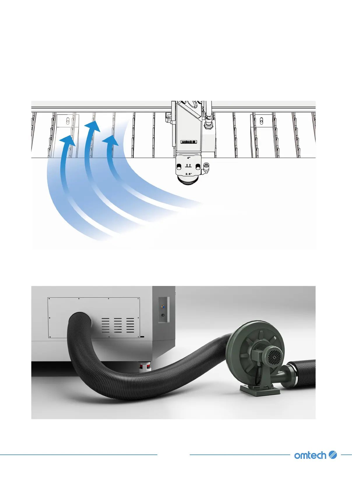 The exhaust system is used to remove fumes and dust produced during engraving to keep your
