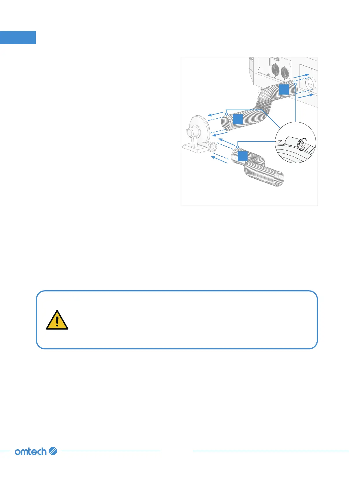 NEVER operate the laser if the fan and ducts are not working to purify or remove