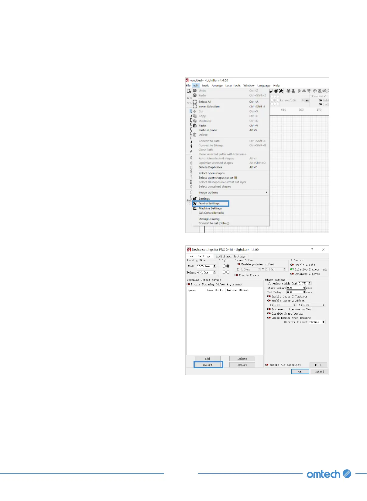 Omtech PRO 3655 - Lightburn Scanning Offset