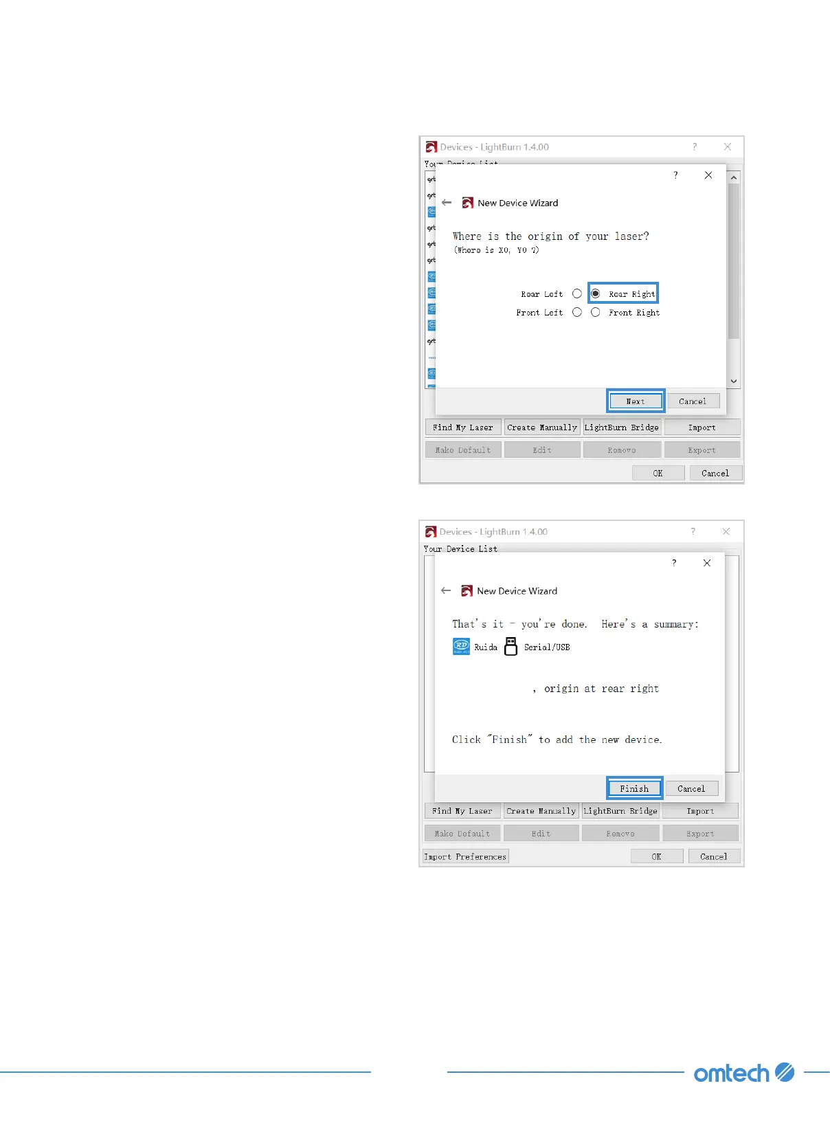 7. Set the origin to “Rear Right” as shown and