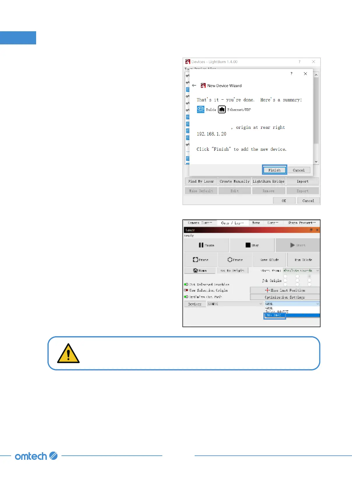 DO NOT connect your computer to the engraver with a network cable. The