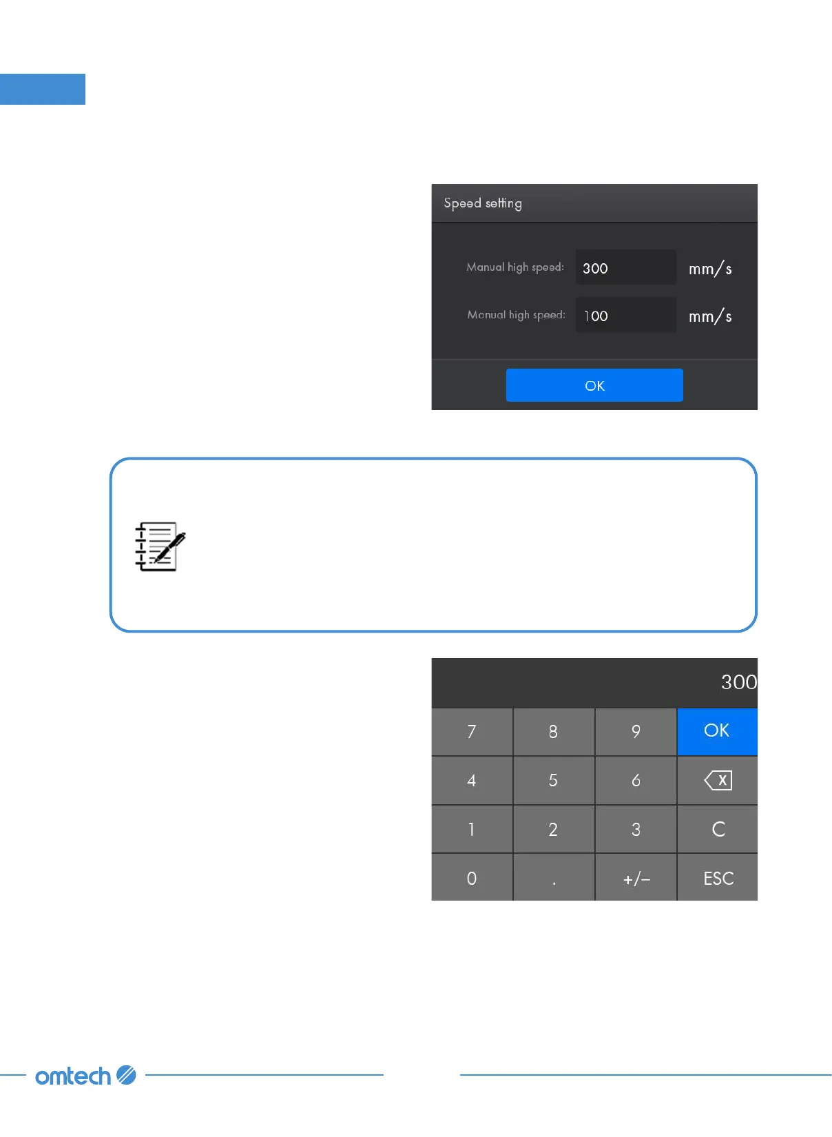When the system is idle, the speed parameters controls the manual high