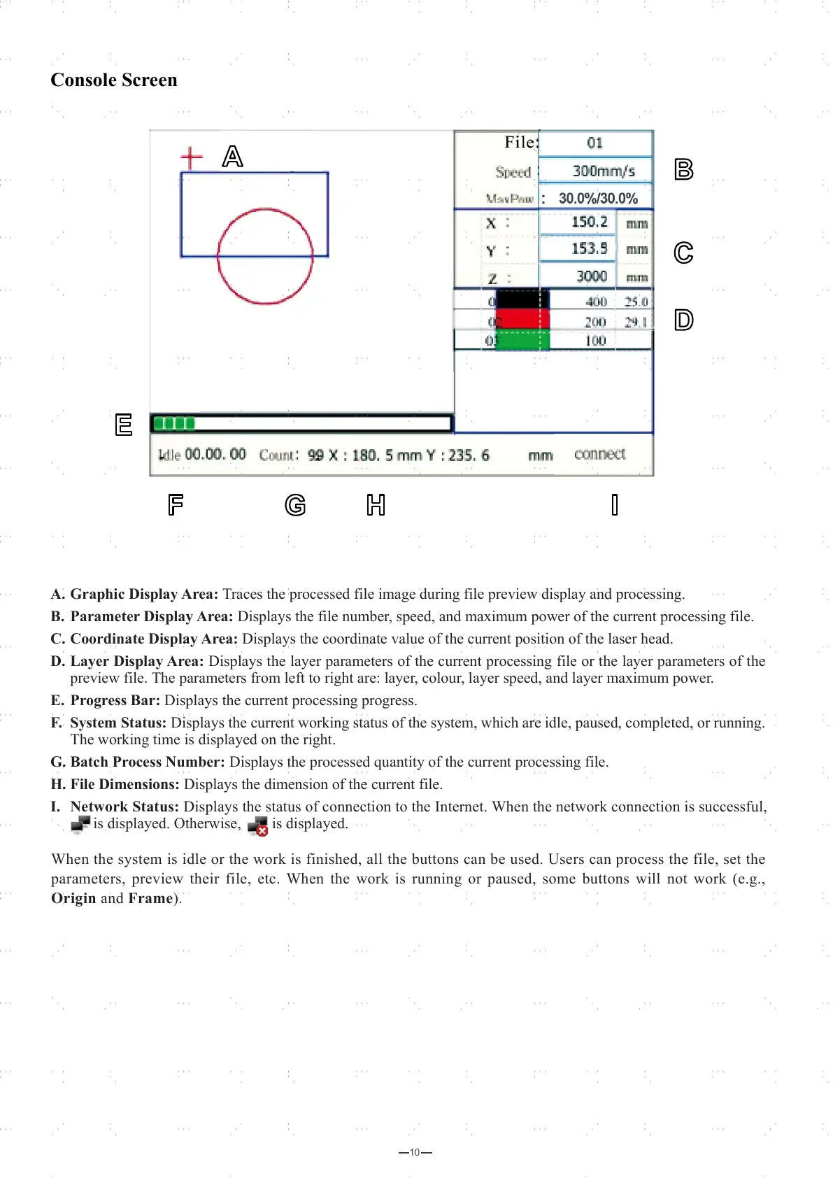 B. Parameter Display Area: Displays the file number, speed, and maximum power of the current processing file.