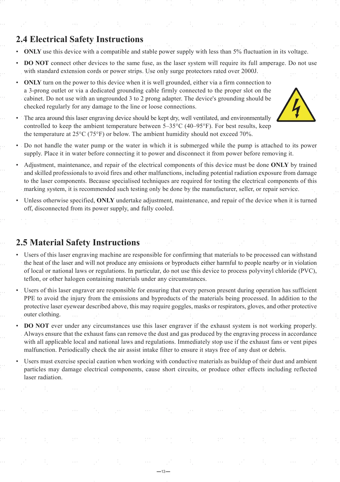 • Users of this laser engraver are responsible for ensuring that every person present during operation has sufficient