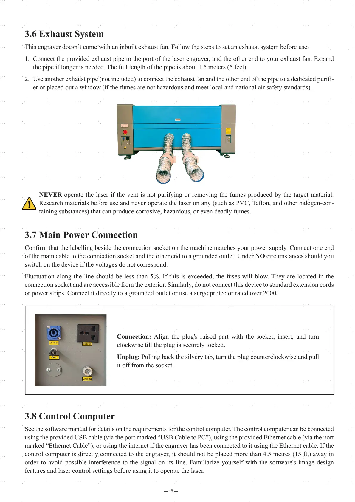 1. Connect the provided exhaust pipe to the port of the laser engraver, and the other end to your exhaust fan. Expand