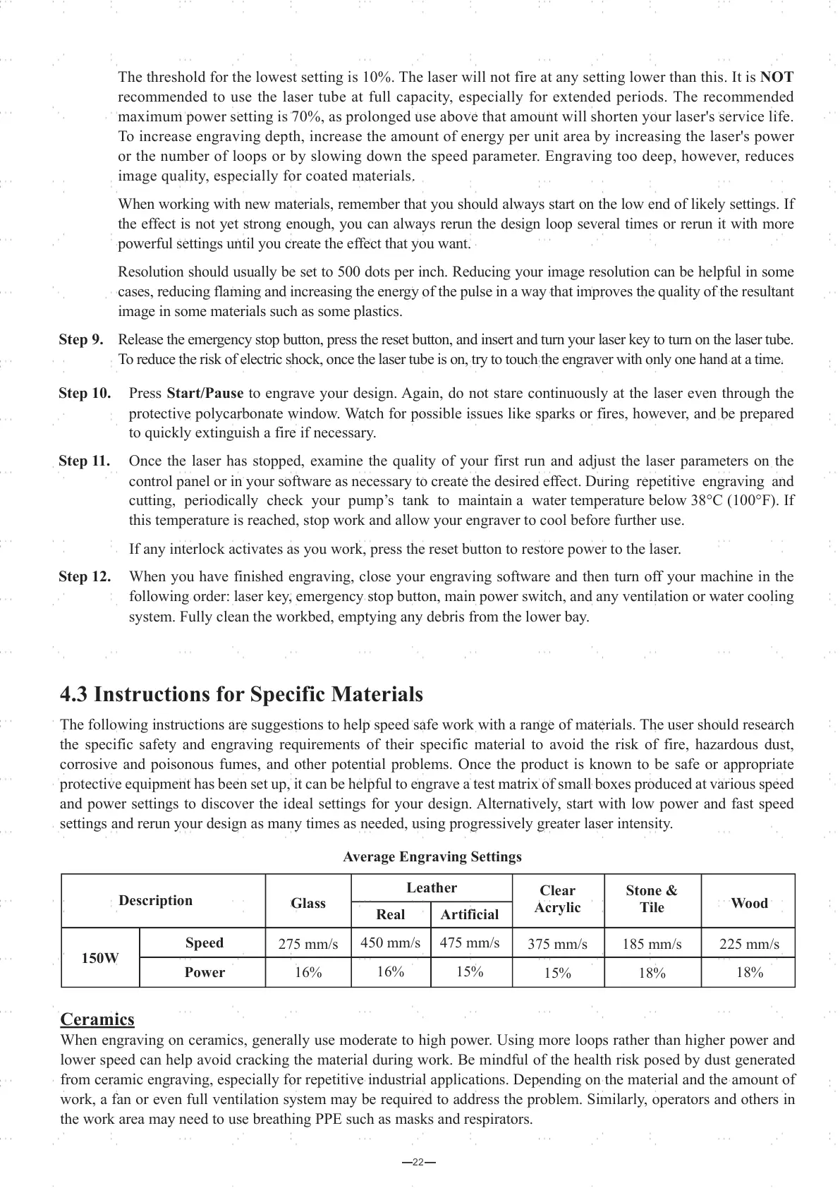 the specific safety and engraving requirements of their specific material to avoid the risk of fire, hazardous dust,