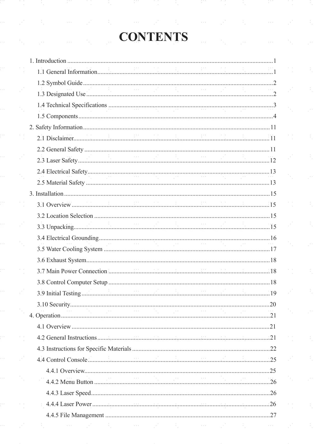 4.4.3 Laser Speed.................................................................................................................26