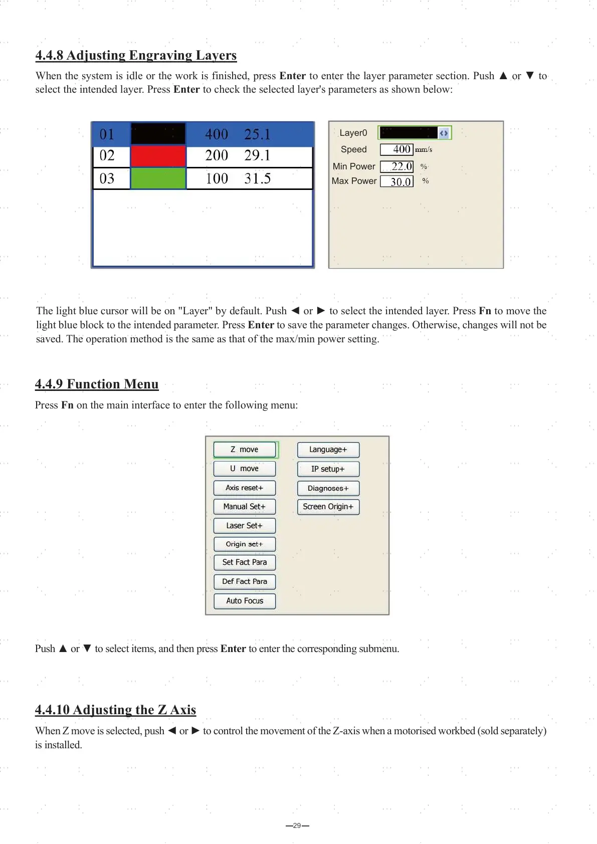 When the system is idle or the work is finished, press Enter to enter the layer parameter section. Push ▲ or ▼ to
